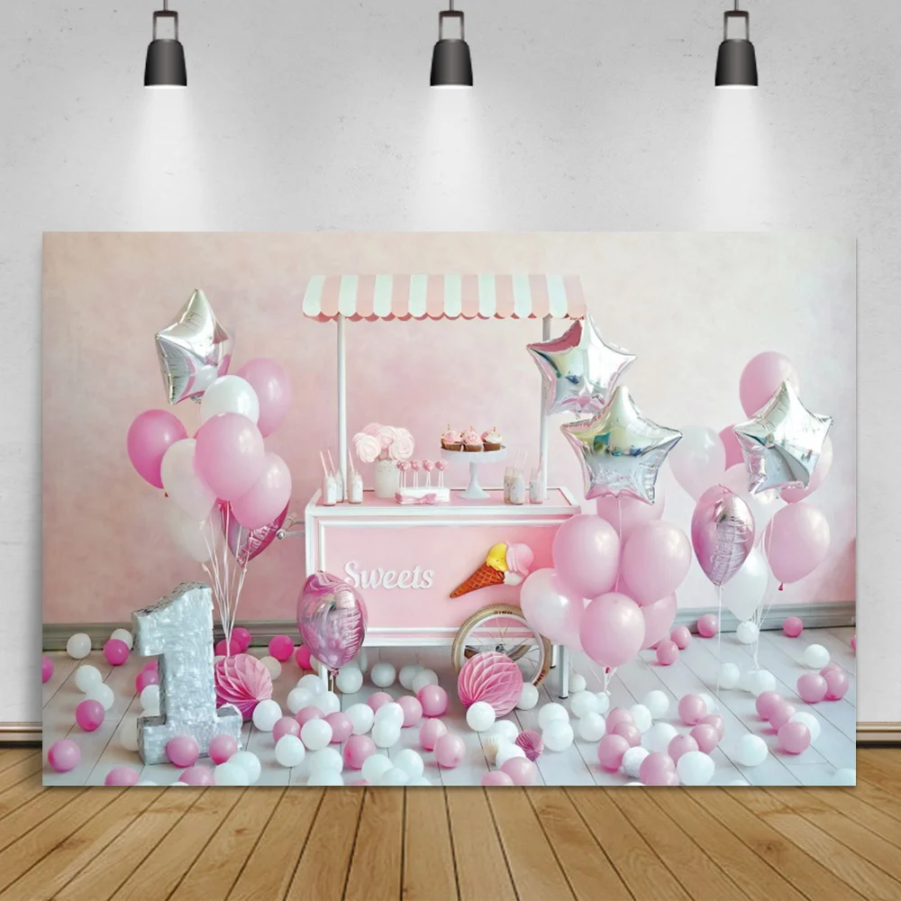 Laeacco розовые воздушные шары детский день рождения фон для фотогр...