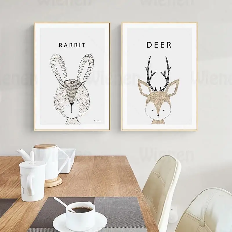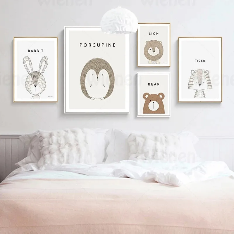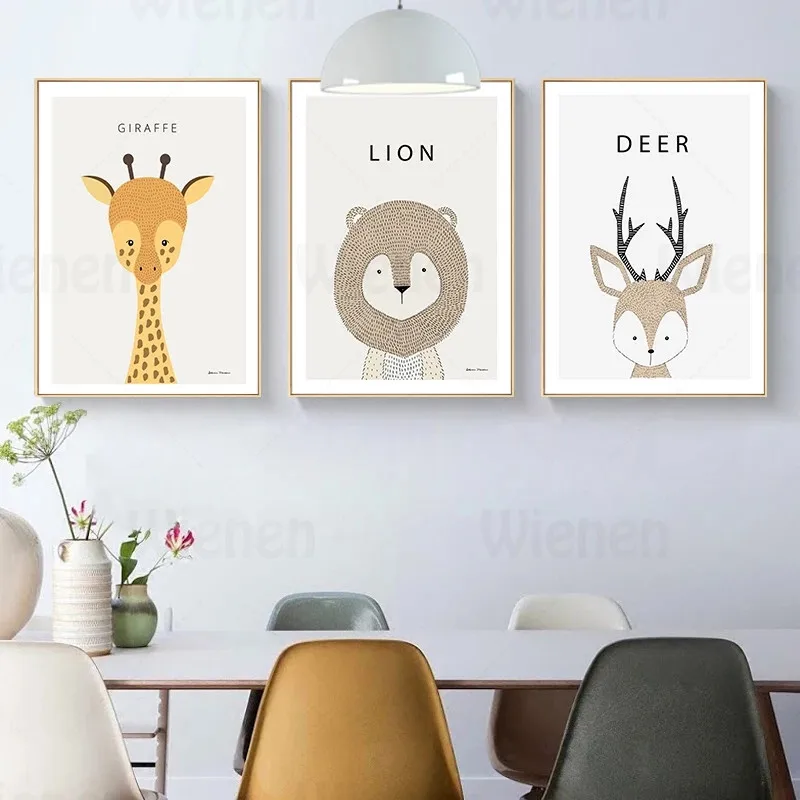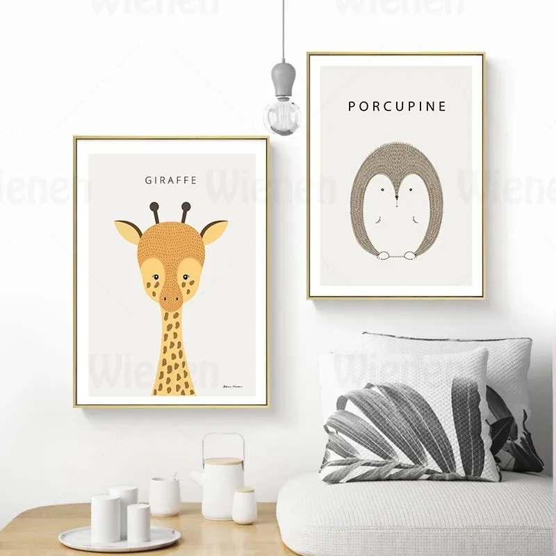 Минималистичный постер для домашнего декора, милые Мультяшные животные, имя, холст, картина, детская Настенная картина, детская спальня, подвесная роспись без рамки
