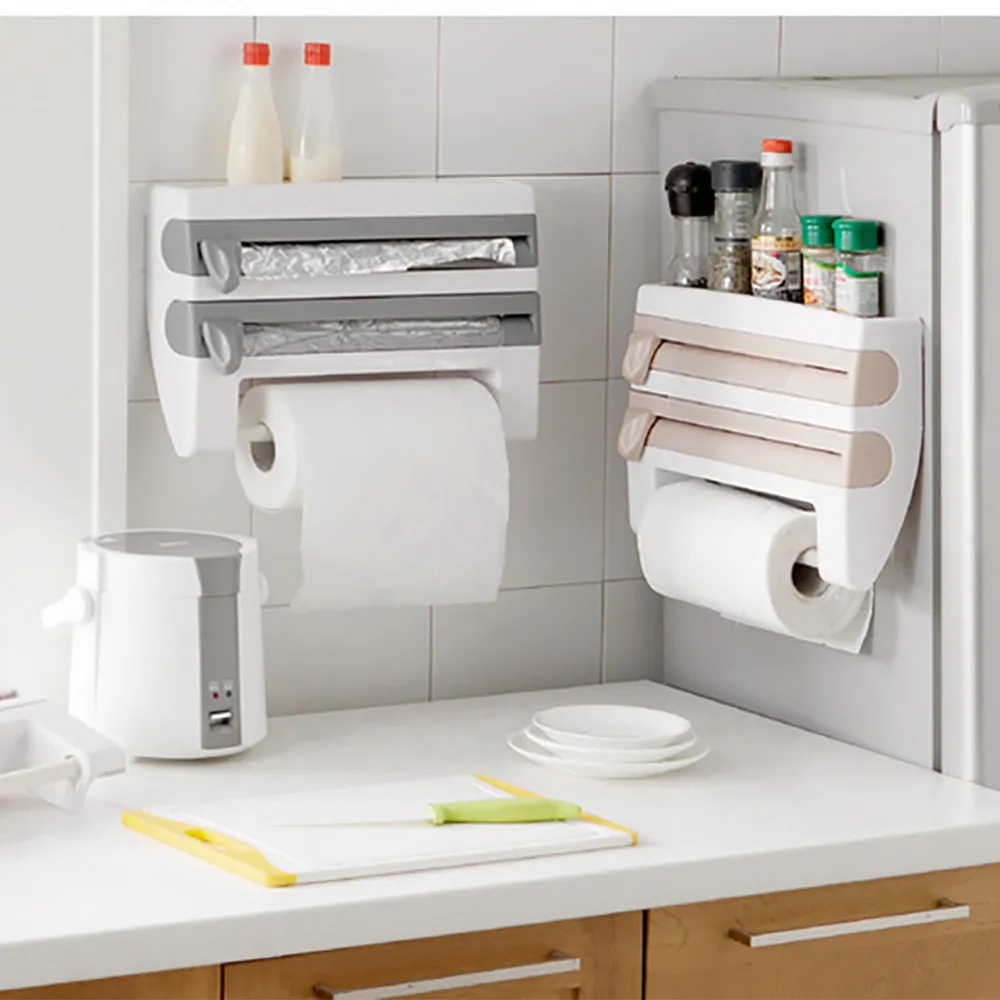 Многофункциональный кухонный держатель для бутылок с пищевой пленкой, держатель для бумажных полотенец, настенный крючок для рулона бумаги и алюминиевой фольги