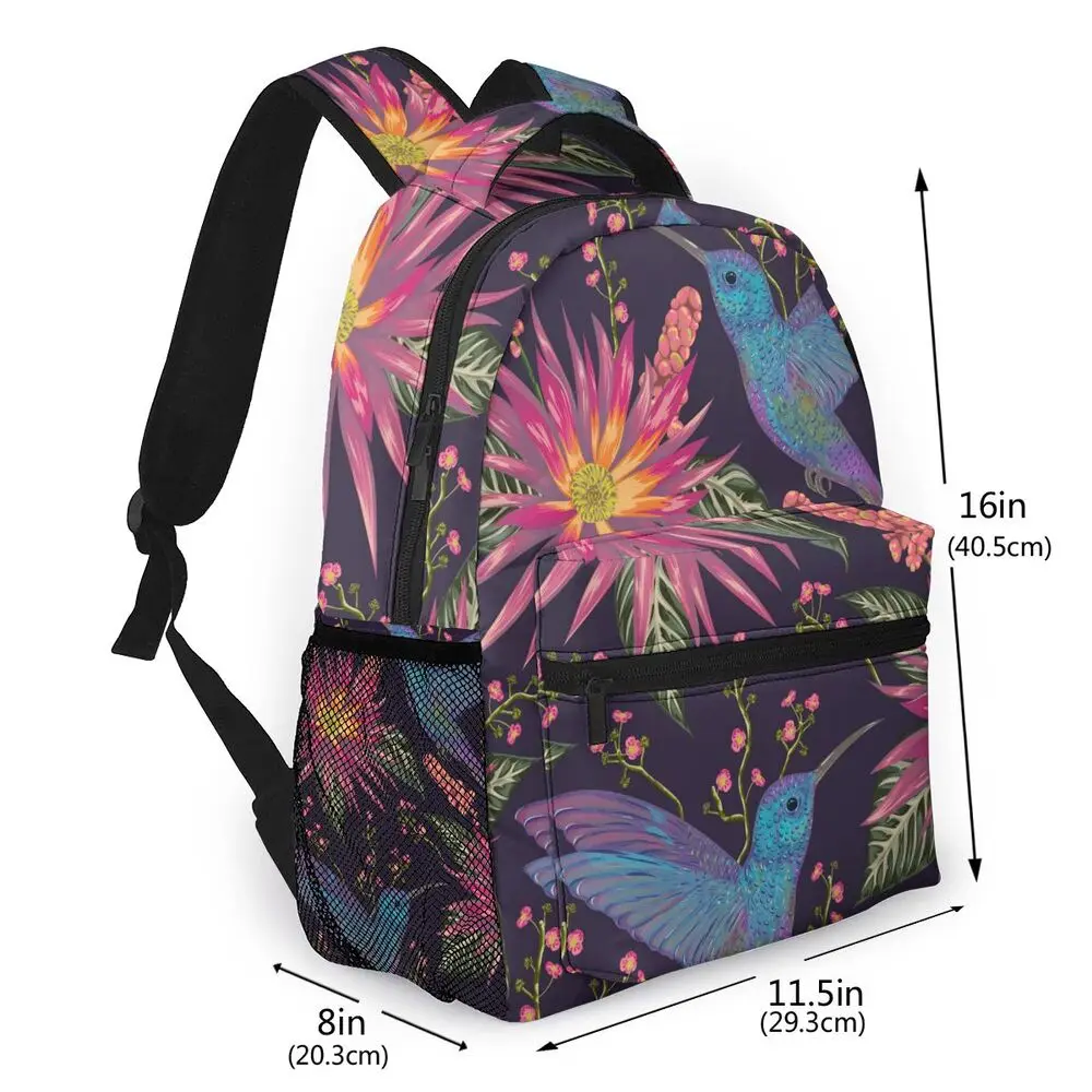 Рюкзак OLN для девочек-подростков, с Тропическими Цветами Колибри, ягодами, листьями, Женский школьный рюкзак