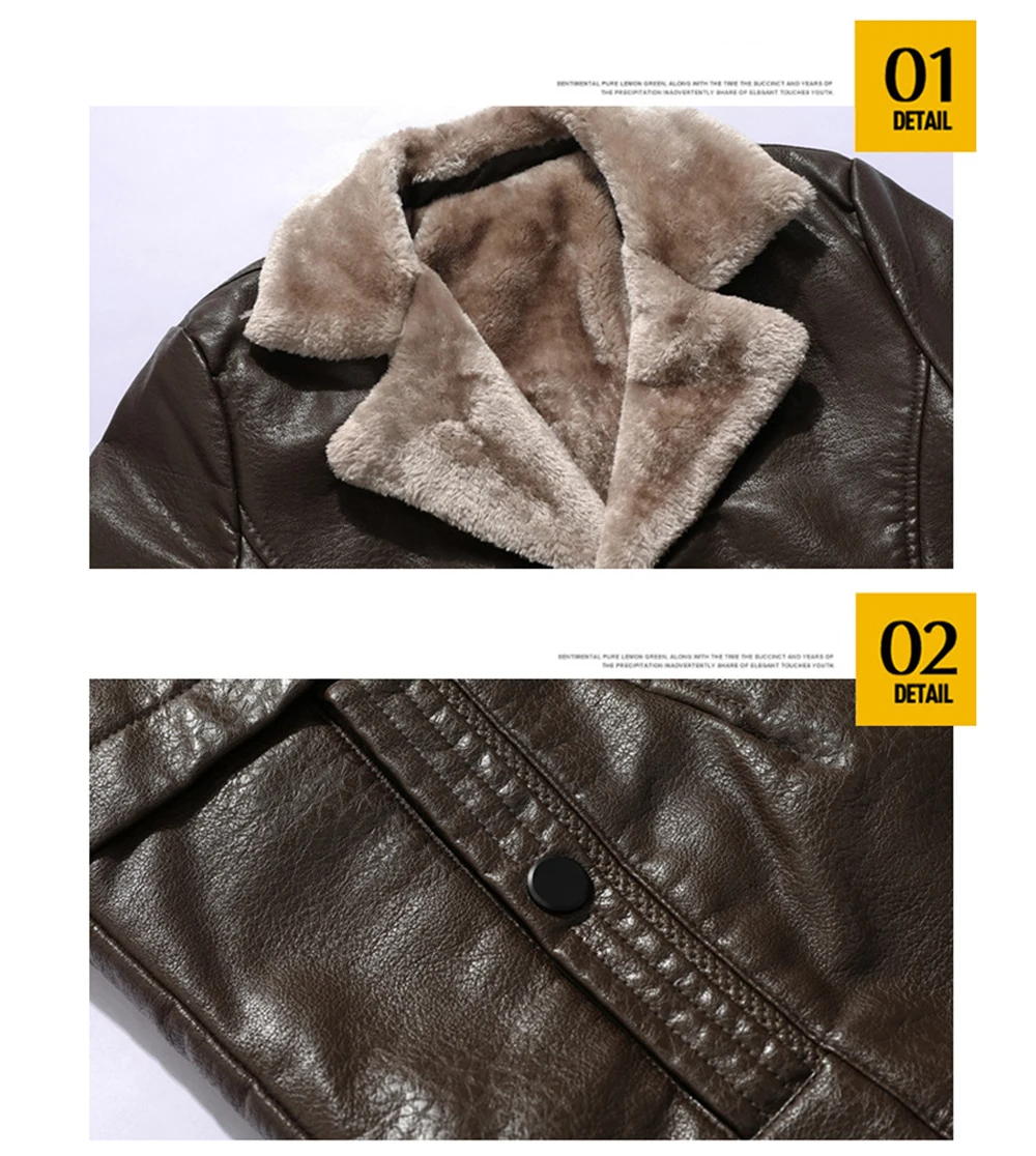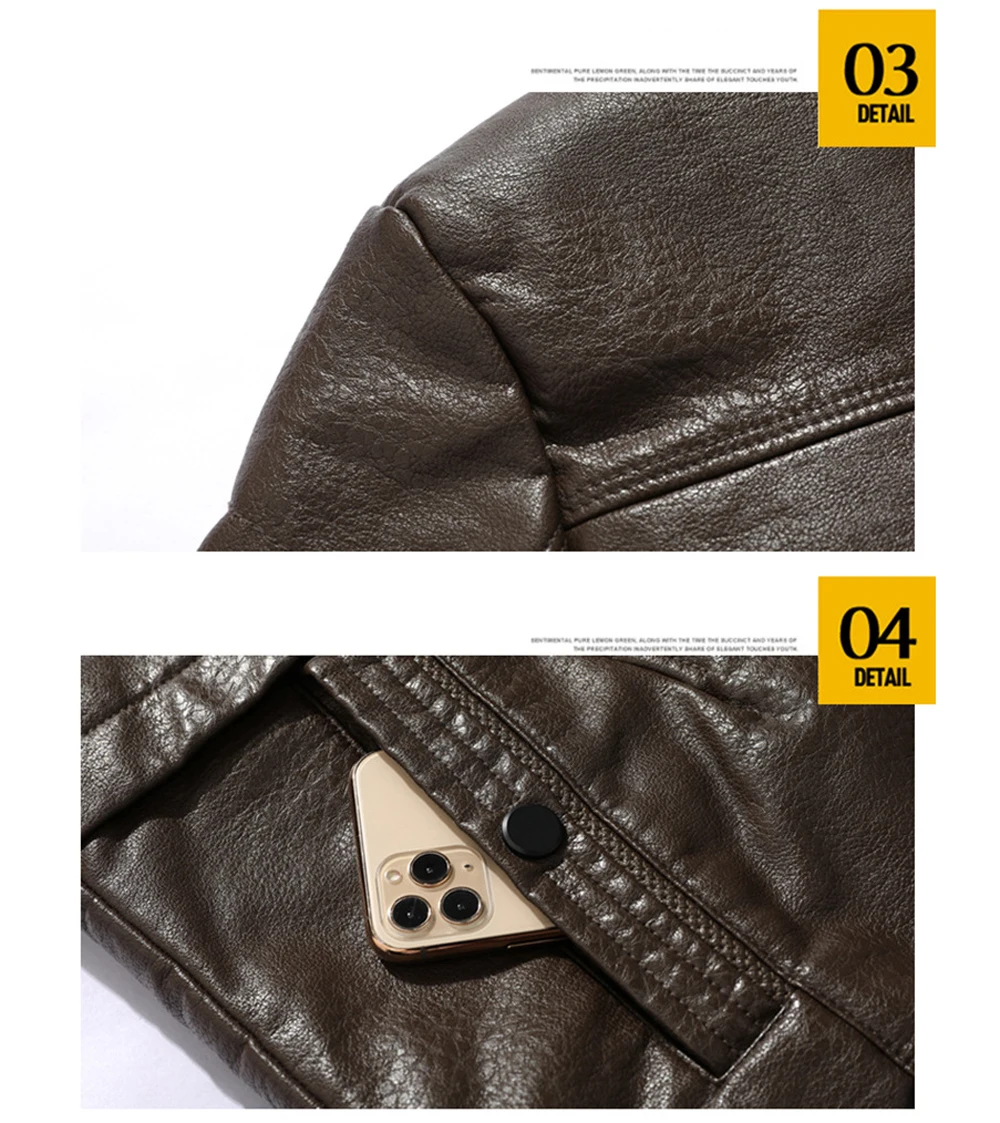 Мужская куртка из искусственной кожи Maxulla, Повседневная теплая мотоциклетная кожаная куртка из флиса средней длины, приталенная кожаная куртка, Мужская одежда