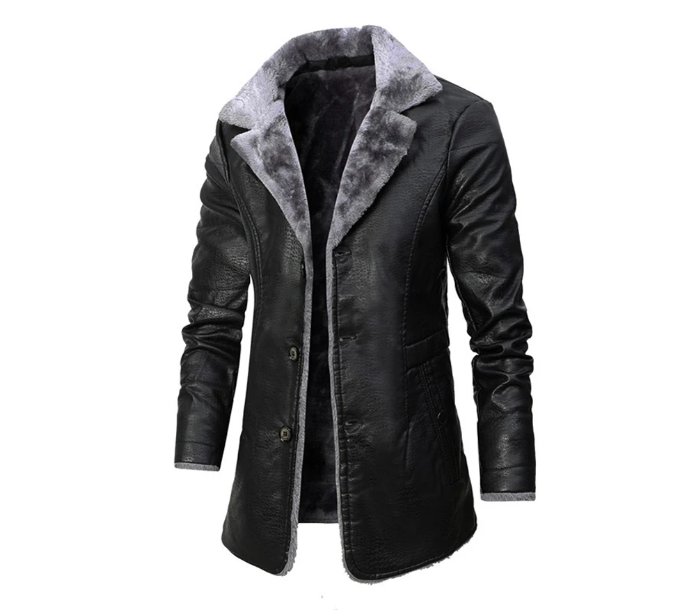 Куртка мужская из искусственной кожи, на флисе, зимняя, теплая, приталенная