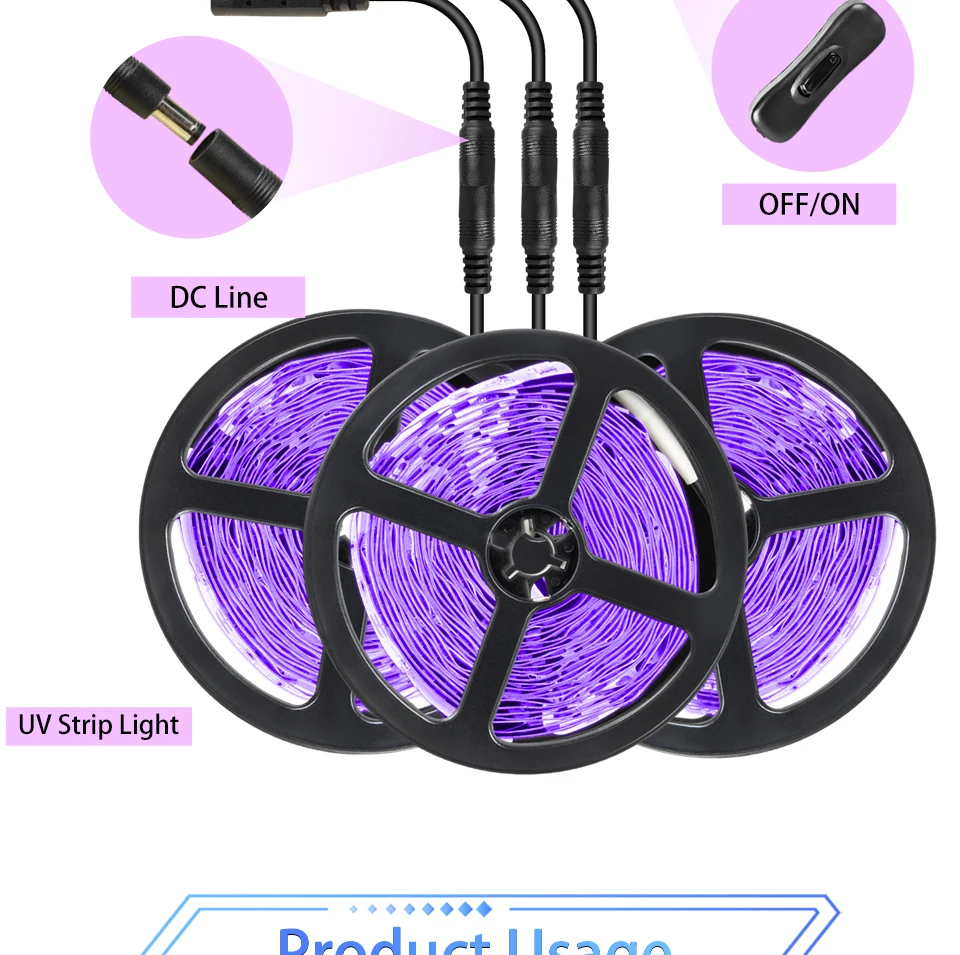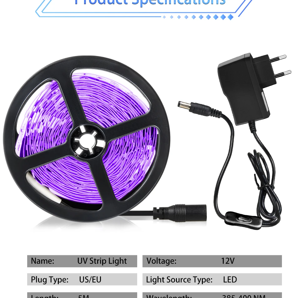 Светодиодная УФ-лента, 300 светодиодов,-нм