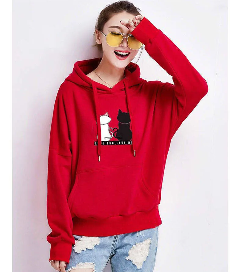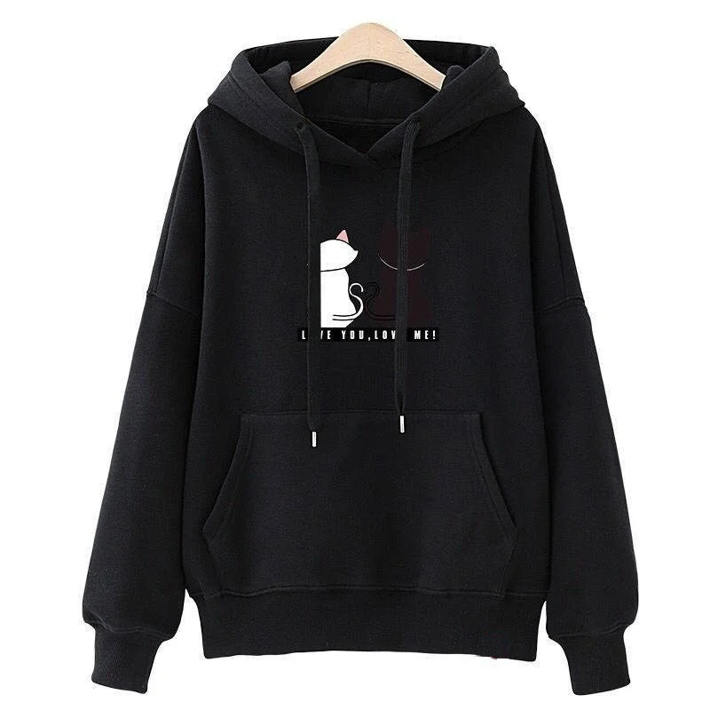Зимний пуловер, свитшоты, Женская кошачья Милая Женская Толстовка С...