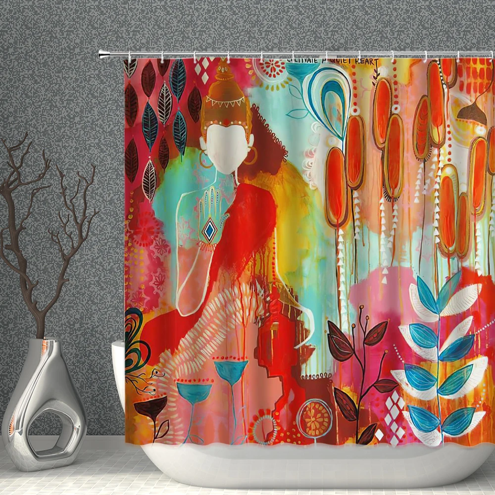 Богемная занавеска для душа дзен, водонепроницаемая ткань, цветная занавеска для ванны в стиле бохо, Будда, экран для ванной, домашний декор с крючками