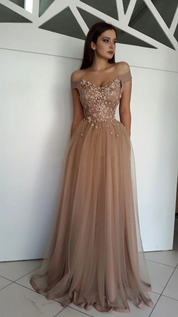 Платье для подружки невесты, ТРАПЕЦИЕВИДНОЕ, цвета шампанского, с открытыми плечами, Длинные свадебные платья для выпускного вечера, для женщин и гостей, Новинка