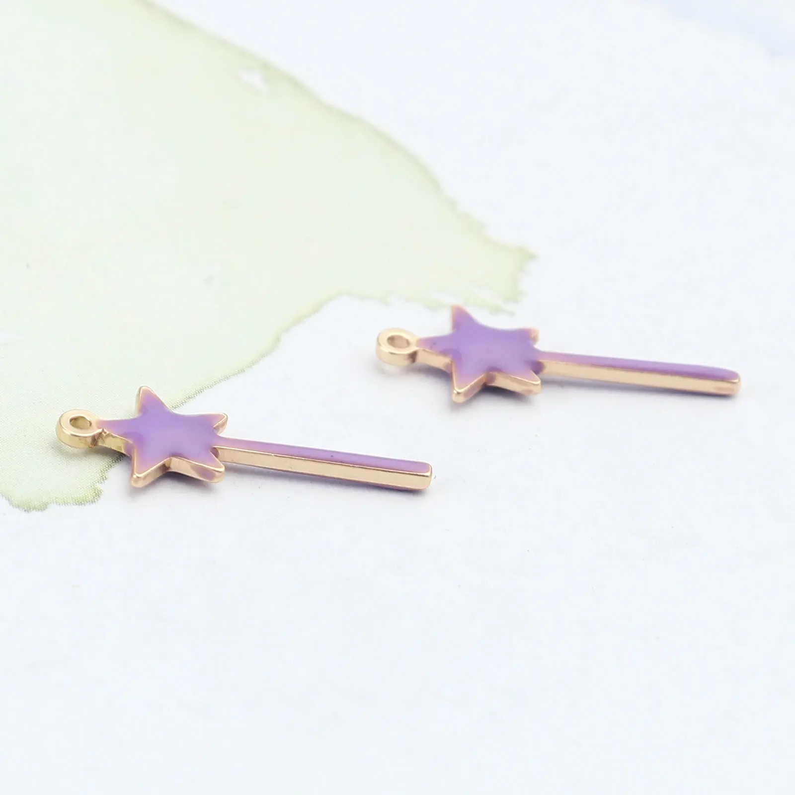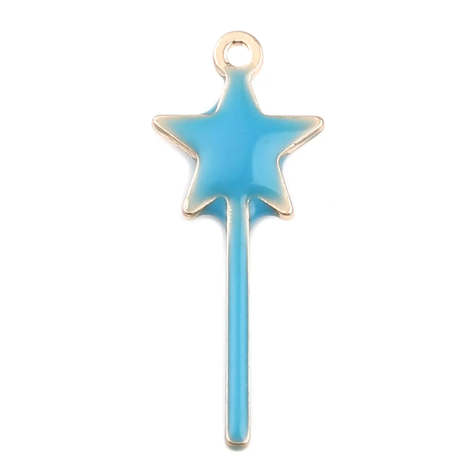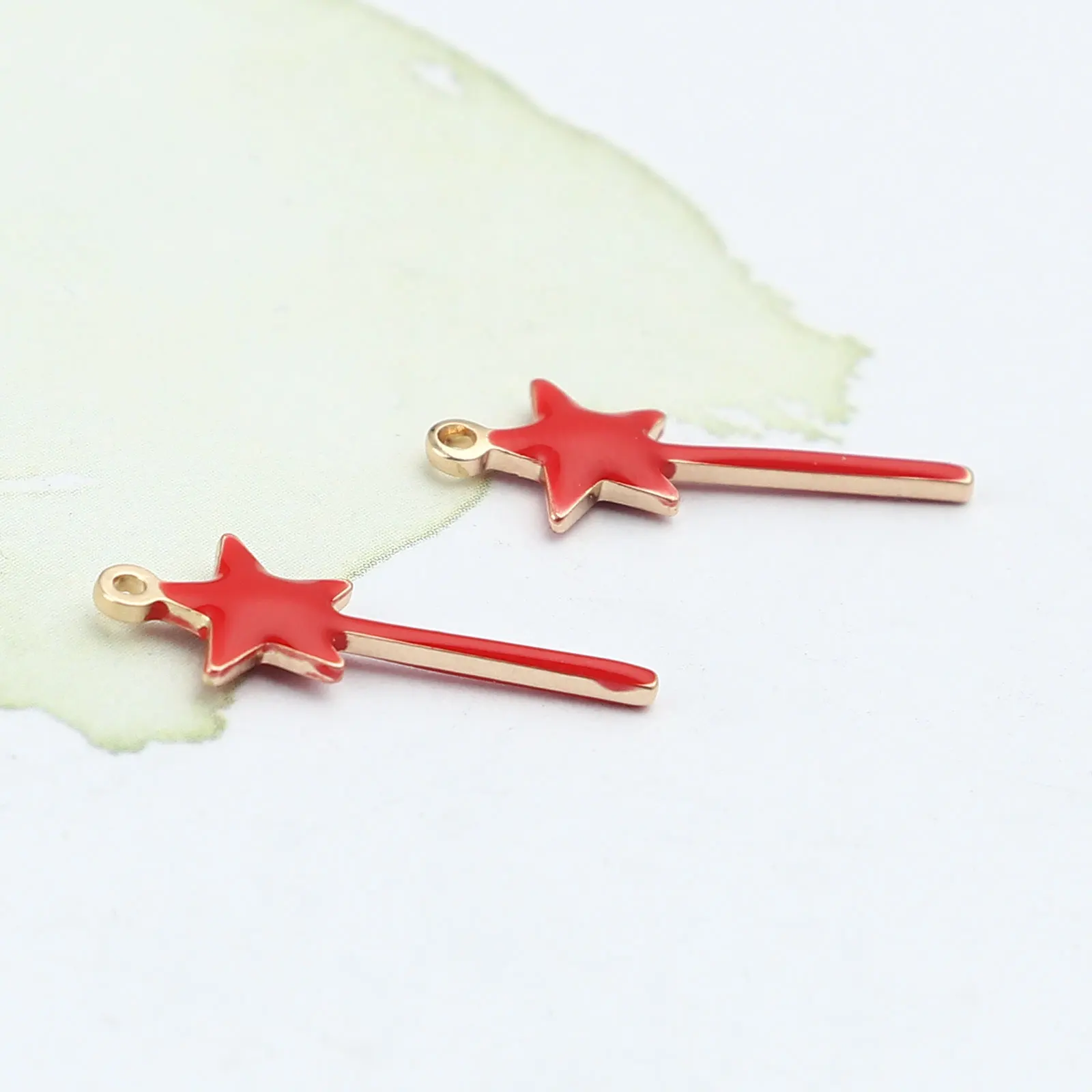 10 шт., медные двухсторонние эмалированные пайетки, волшебная палочка со звездами, шармы, золотой цвет, 20 мм X 8 мм для изготовления ювелирных изделий ручной работы