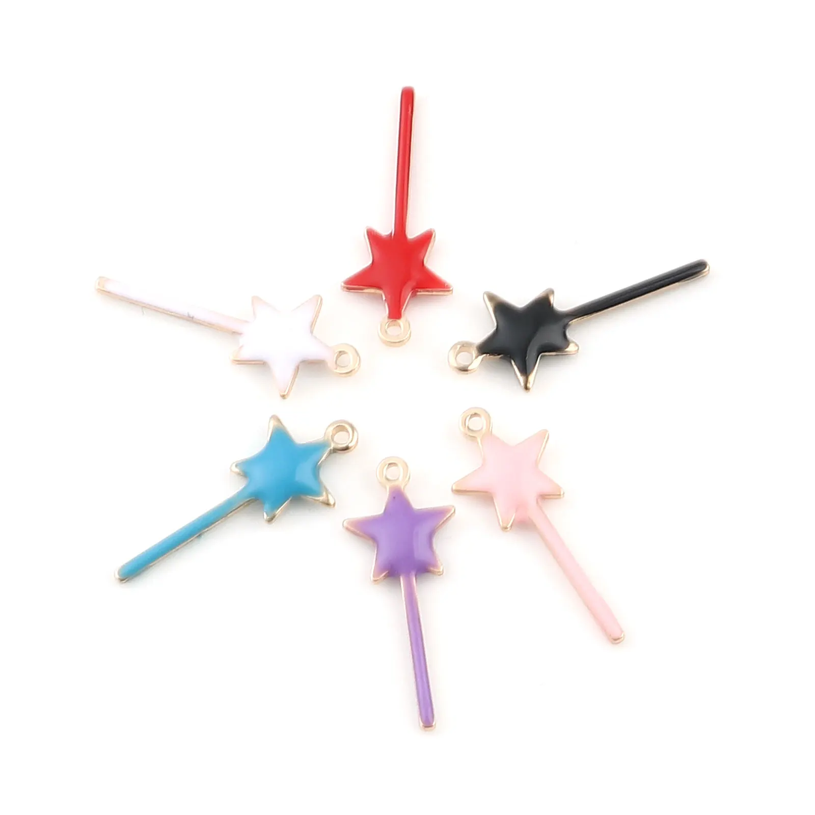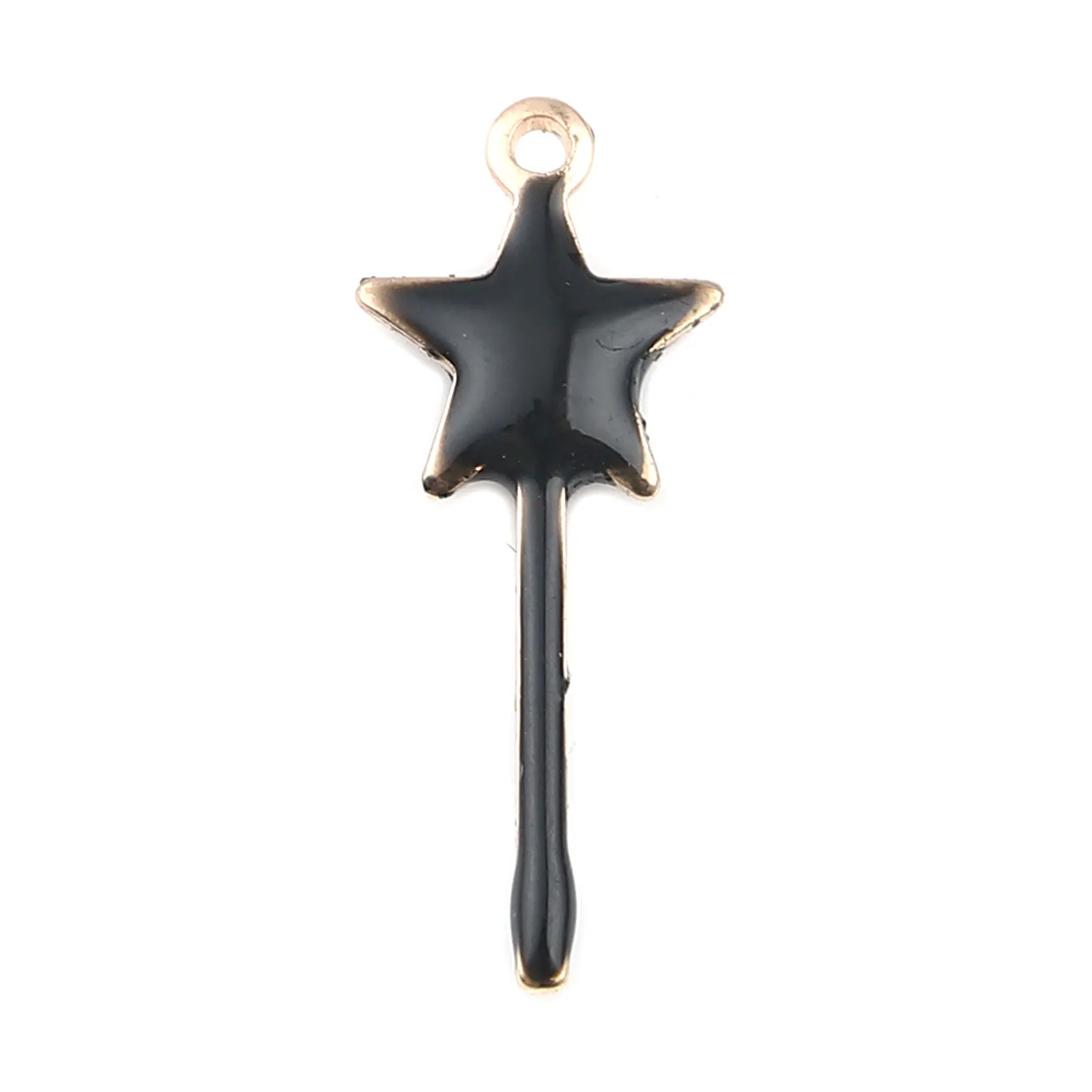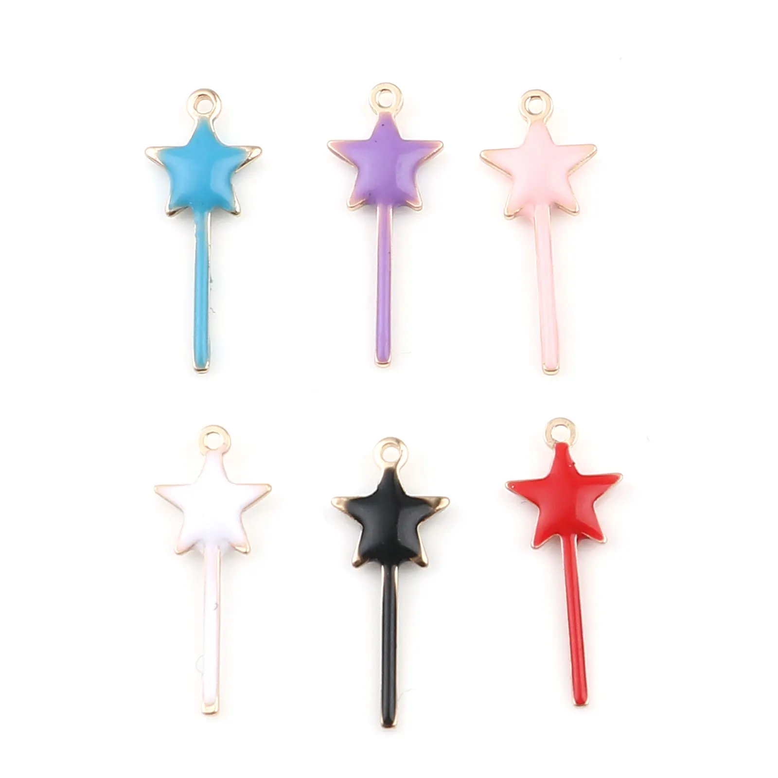 10 шт., медные двухсторонние эмалированные пайетки, волшебная палочка со звездами, шармы, золотой цвет, 20 мм X 8 мм для изготовления ювелирных изделий ручной работы