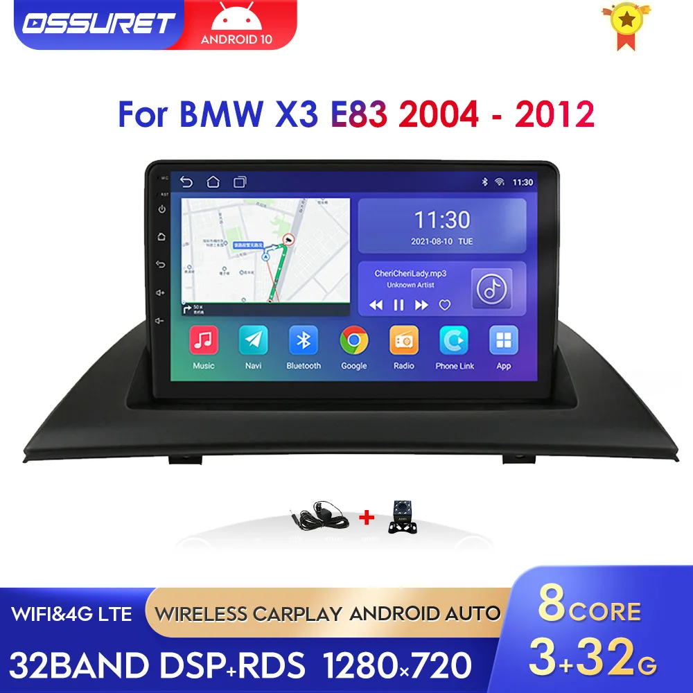 Автомагнитола на Android 10 с GPS-навигацией для BMW X3, E83, 2004-2008, 2009-2012, мультимедийный видеоплеер 1080P с USB, Wi-Fi, 4G, 2 Din, FM