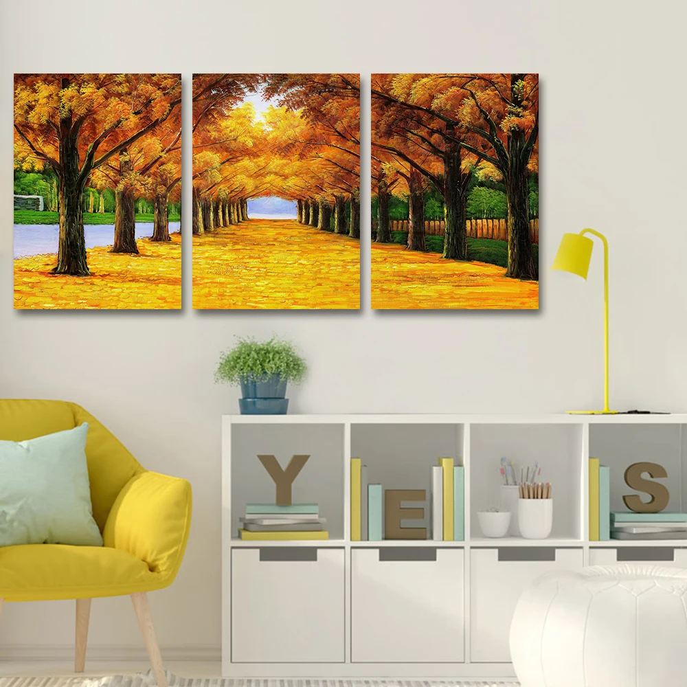 Золотая осень и опавших листьев картина постер на стену современный Стиль Печать холст картина искусство проход гостиная спальня украшения