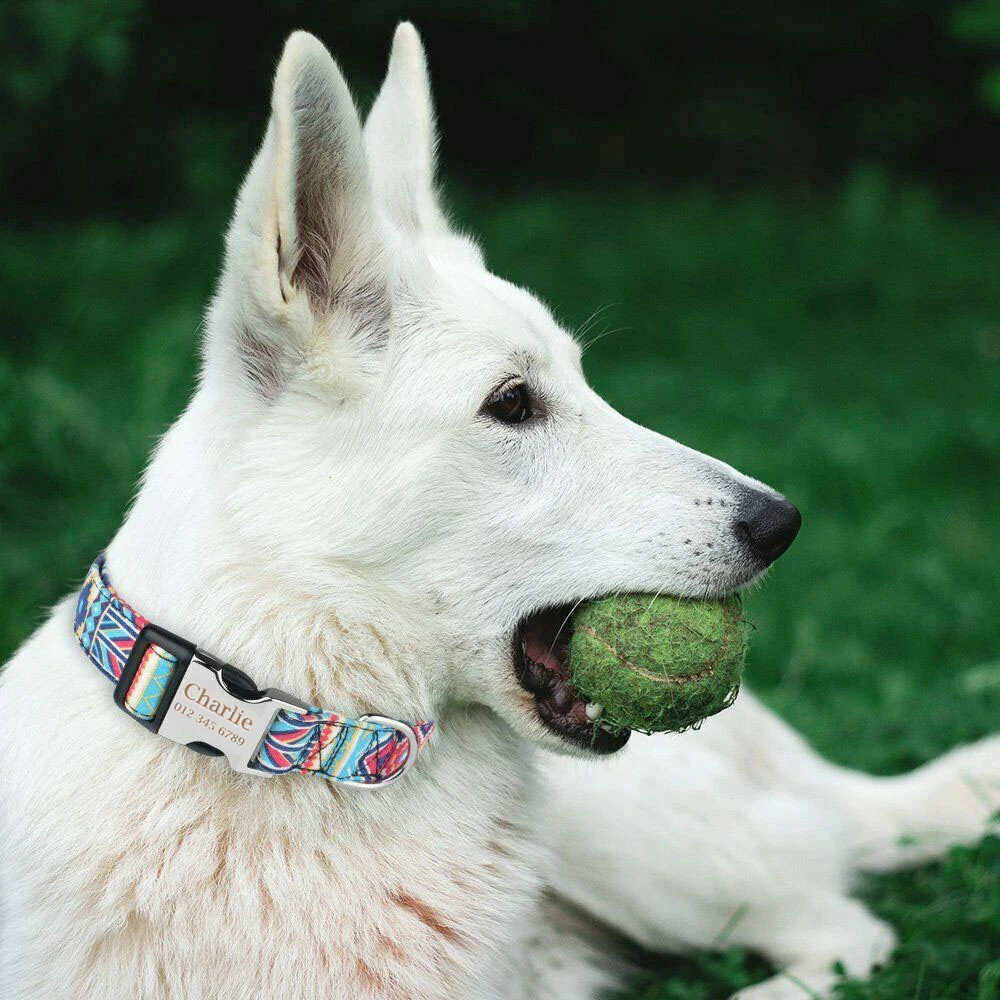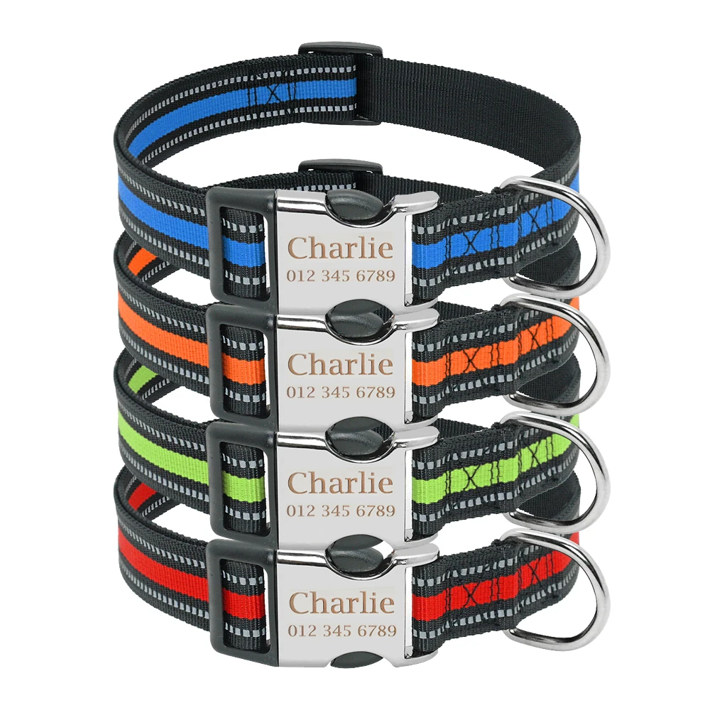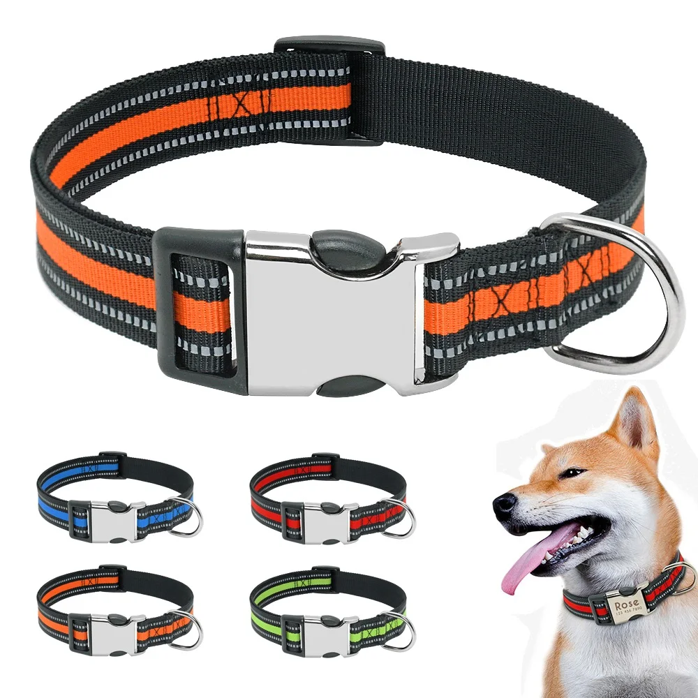 Именной ошейник для собак, нейлоновый аксессуар со светоотражающей табличкой, индивидуальная гравировка, маленький, средний, большой размер, для питбуля, Мопса