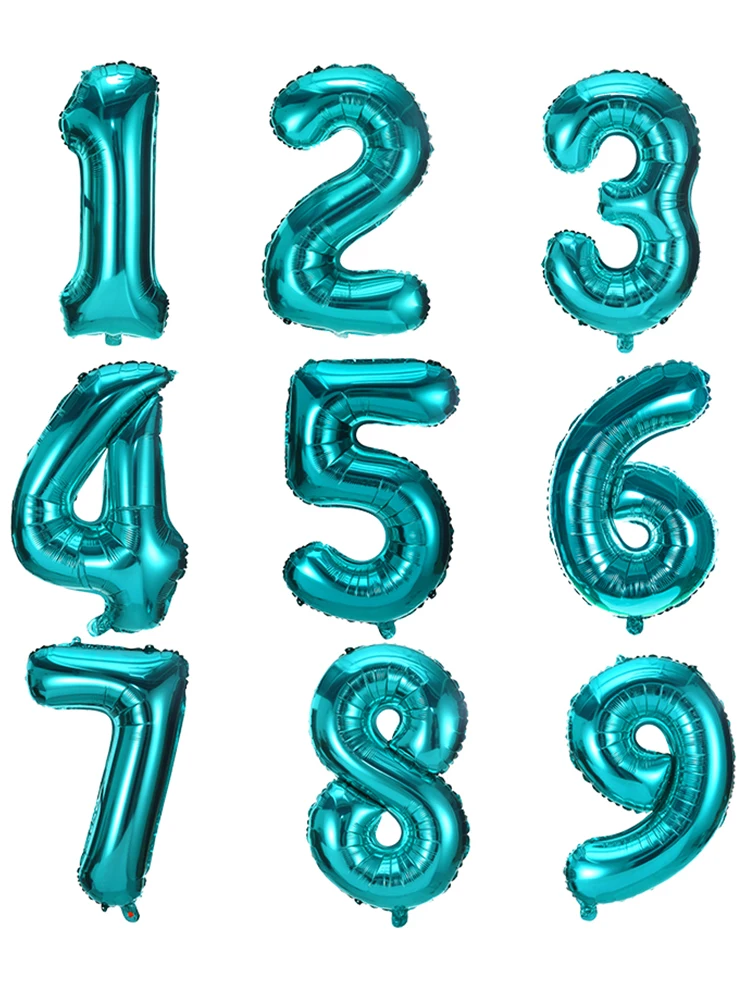 Шары из бирюзовой фольги в форме цифр, 32 дюйма, для украшения детв...