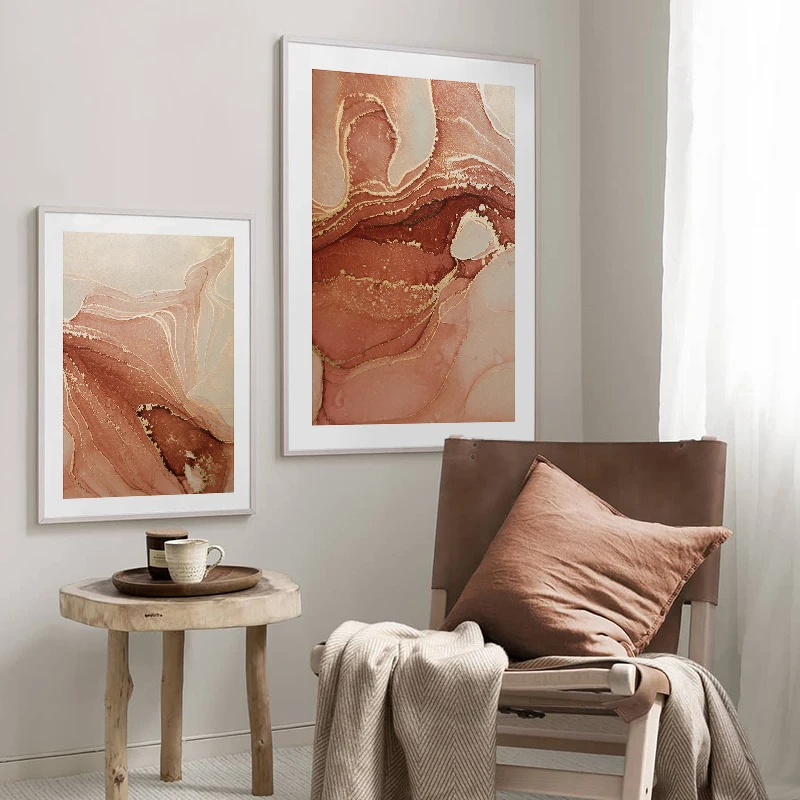 Абстрактная Картина на холсте, с янтарными мраморными венами, настенные плакаты и принты, модульные картины для украшения стен дома