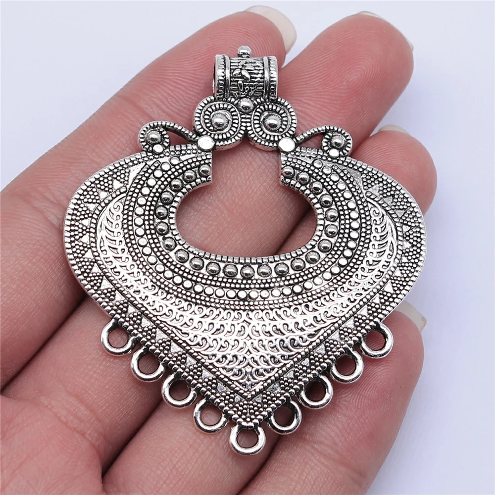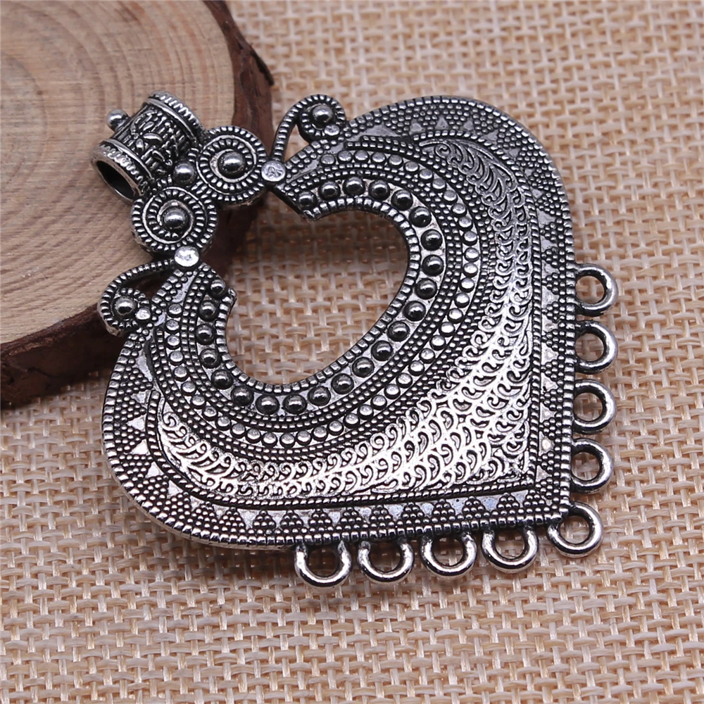 Соединитель для ожерелья WYSIWYG, 1 шт., 61x53 мм, сердечко серебряного цвета, в старинном стиле, для самостоятельного изготовления ювелирных изделий, фурнитура для ювелирных изделий