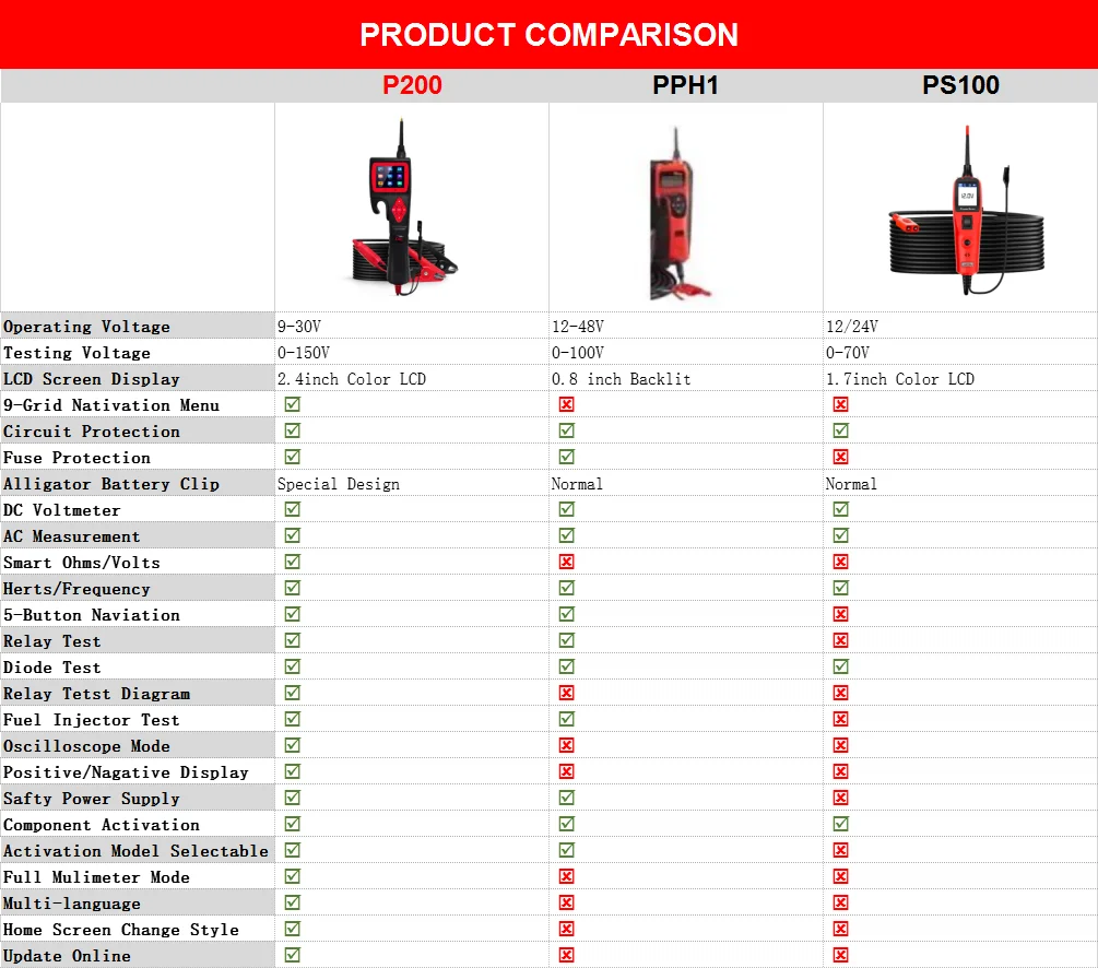 1. Тестирование напряжения и полярности-быстро определяет напряжение постоянного/переменного тока и положительный/отрицательный.2. Тестирование непрерывности сопротивления-ЖК-экран отображает значение сопротивления.3. Синхронное тестирование цепи переменного тока-быстрое решение проблемы цепи датчиков.4. Активация компонентов в руке, в транспортном средстве или с землей.5. Проверьте фары прицепа и удлинитель Connections-10M, чтобы вы могли тестировать автомобили или грузовики.6. Проверка плохих контактов заземления и обнаружение коротких замыканий