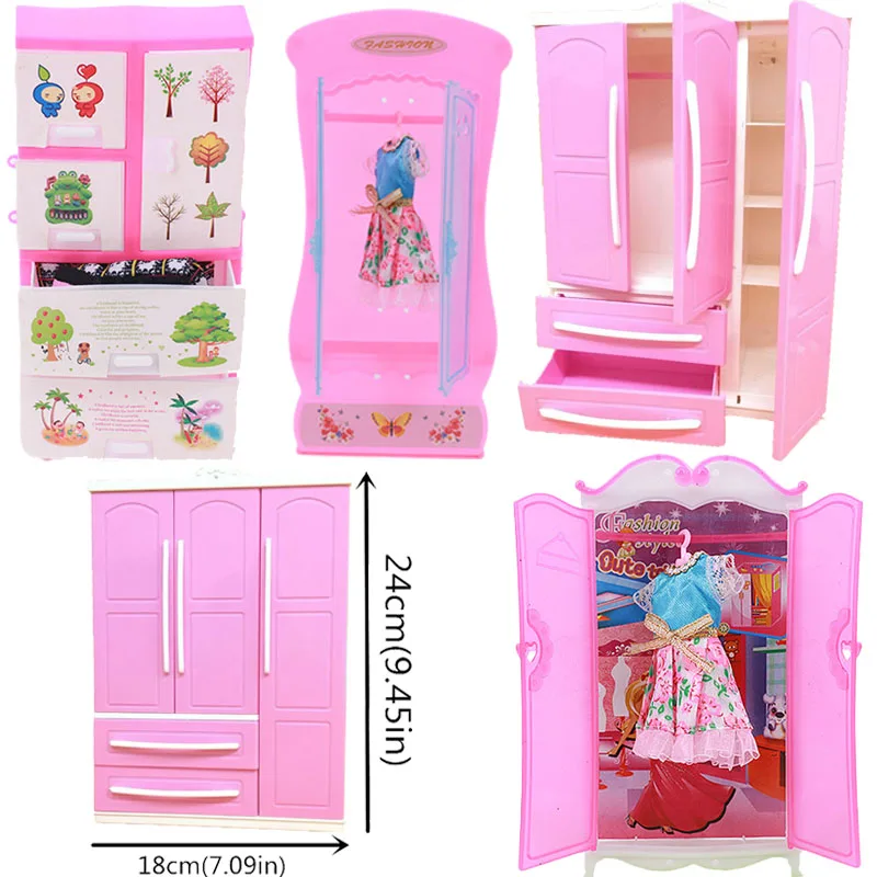 Шкаф для хранения одежды, 4 вида, розовый, для Барби, игрушки для девочек, мебель для спальни, аксессуары для кукольного дома