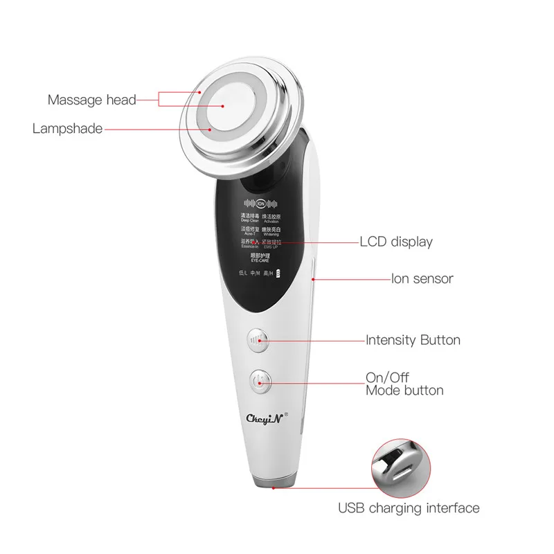 【 7 режимов и 3 шестеренки 】есть модели с 7 различными режимами и 3 шестеренками, регулируемые для различных потребностей и различных типов кожи. 【Sonic + Функция горячего сжатия: 】мгновенно проникает в молекулу питательных веществ в дно кожи. 【 4 Светодиодный светильник 】 фотонный светильник, управляемый кнопкой [Power], красный светильник, синий светильник, оранжевый светильник, цветной светильник). 【 Используйте rs дружественный дизайн 】большой ЖК-дисплей для более читаемого использования, удобный базовый дизайн для удобной зарядки и хранения. 【Несколько функций 】лифтинг и подтягивание, улучшение эластичности кожи, удаление морщин, омоложение кожи и отбеливание, расслабление мышц и массаж, И лучше впитывает питание. 【Практичное использование 】оснащено специальной базой для косметического инструмента, удобнее разместить. 7 режимов: 1) режим очистки: глубоко очистите кожу. 2) Режим активации: он может помочь восстановить эластичность кожи. 3) Режим удаления акне: стимулирует кровообращение и анти-акне. 4) Режим отбеливания: отбеливание и Осветление кожи. 5) Режим импорта: эффективно приводит в лосьон для лучшего поглощения питания. 6) лифтинг и укрепляющий режим: восстанавливает эластичность кожи и делает кожу упругой и гладкой, против морщин. 7) режим ухода за глазами: гладкие круги темных глаз. 4 светодиодный лампы: 1) Красный светильник: регенерация коллагена. 2) синий светильник: противовоспалительный и против акне. 3) Оранжевый светильник: отбеливание кожи и светильник. 4) Красочный светильник: подъемный и укрепляющий. Спецификация: Материал: АБС-пластик Напряжение: DC5V 1A Мощность: 4 Вт Емкость аккумулятора: 750 мАч Время зарядки: около 3 часов Время использования: около 60 минут, используется для использования в течение 10 дней, если 5 минут в день. Светодиодный светильник s: 4 (красный светильник, синий светильник, оранжевый светильник, красочный светильник) Шестерни: 3 Режимы: (очистка, активация, удаление акне, отбеливание, импорт, подтяжка, укрепление и Уход за глазами)