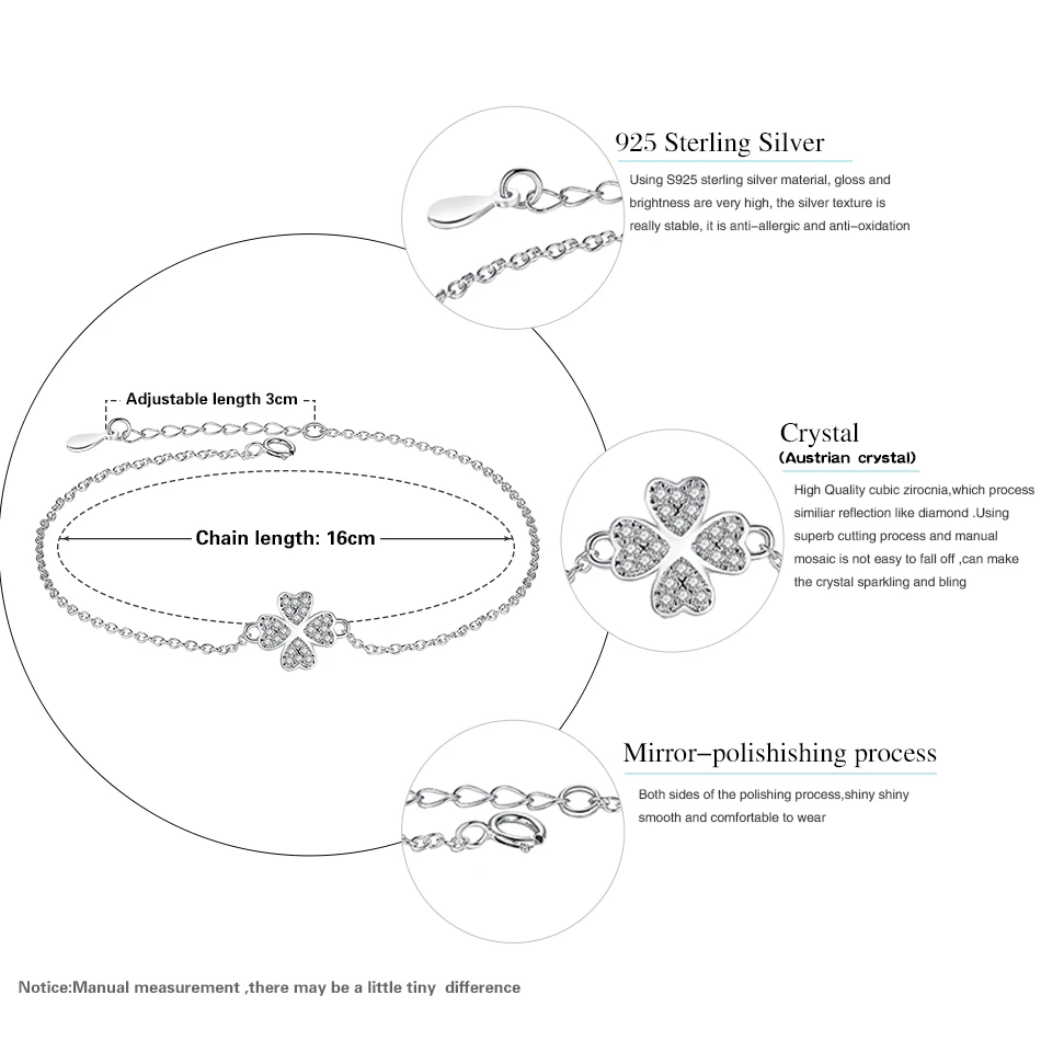 Реальные 925 стерлингового серебра Счастливый клевер браслет с укра...
