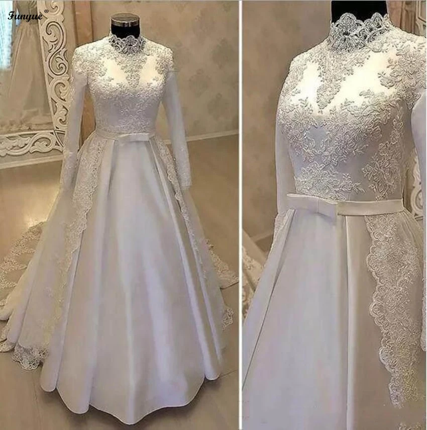 Элегантное мусульманское свадебное платье Funyue с длинным рукавом ...