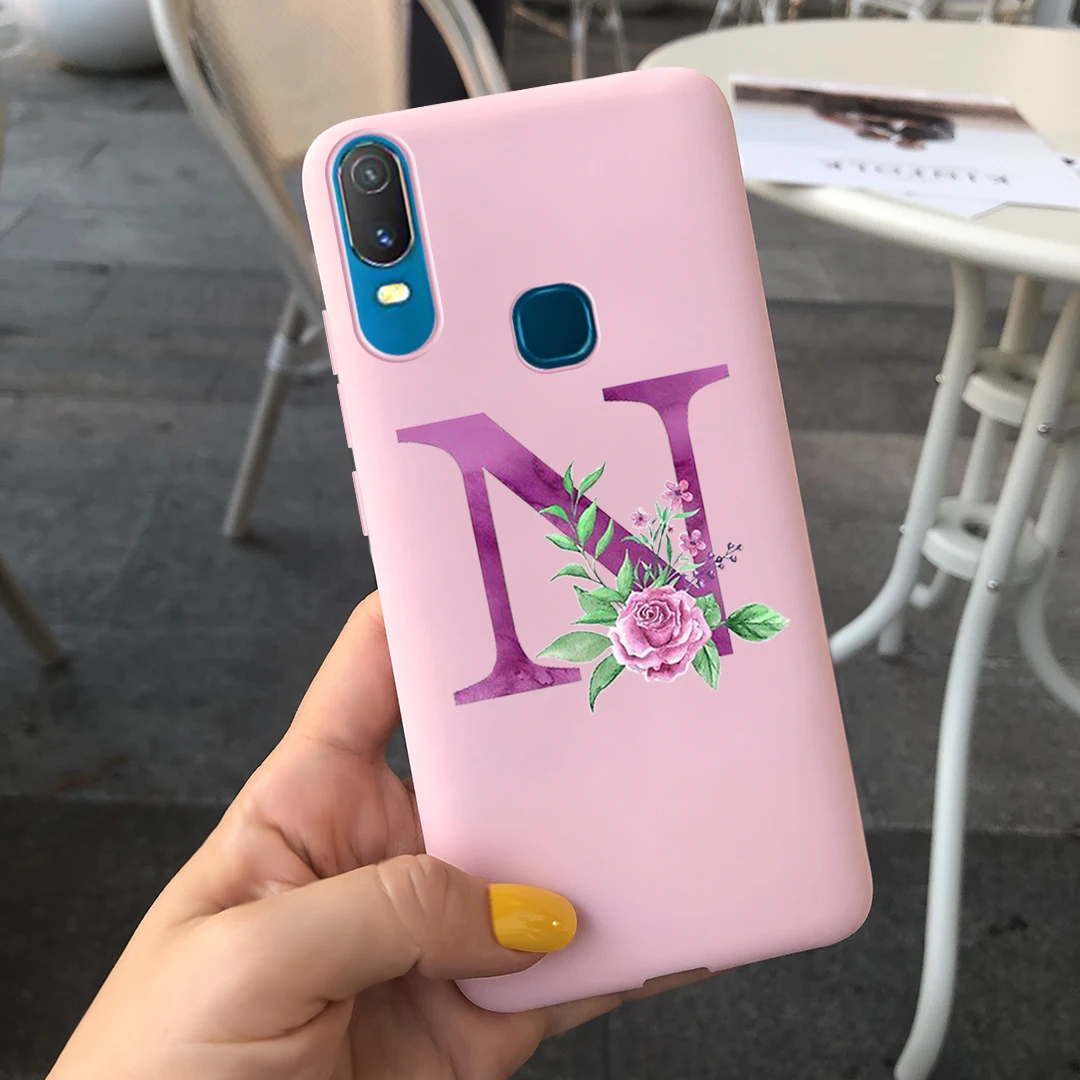 Силиконовые чехлы с буквами алфавита и цветочным принтом для VIVO Y11 2019, мягкая задняя крышка из ТПУ для ViVO Y11 1906 1906_20, чехлы