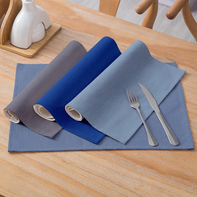 Синяя подстилка из полиэстера и льна, однотонный коврик для столовой посуды, для вечеринки, дома, кухни, стола, современные подставки, водонепроницаемый декор, 30*40 смшт.