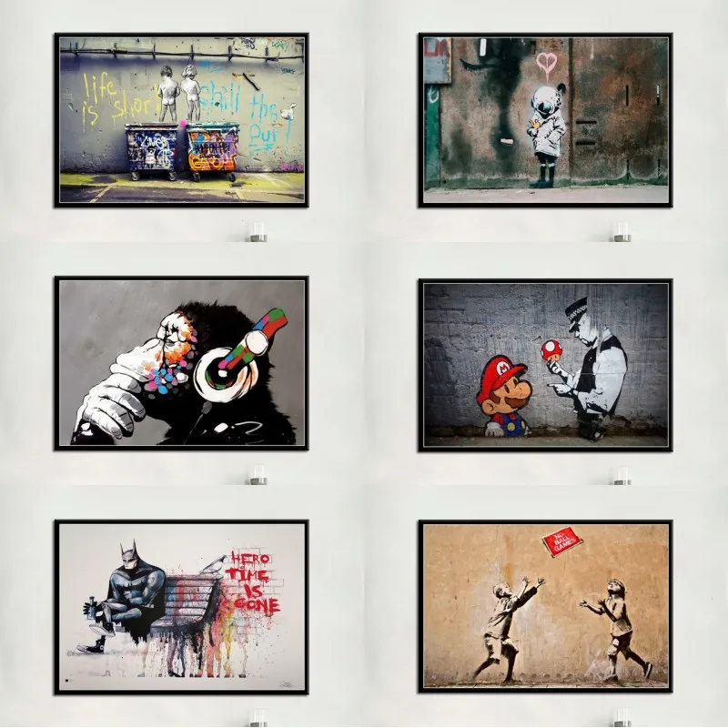 Граффити Бэнкси, Художественная Картина на холсте, уличная Настенна...