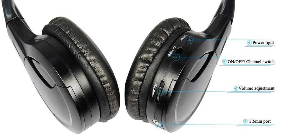 1) Совместим с большинством аудиоустройств с инфракрасными излучателями. 2) инфракрасный Двухканальный беспроводной Звук гарнитуры 3) получите чистый звук от беспроводного аудио устройства без помех от других радиоисточников 4) позволяет использовать на любом Ipad/для Pod, MP3 устройство, которое использует 3,5 мм вспомогательный кабель 5) Подходит для автомобильной аудиосистемы, подходит для использования в автомобиле 6) Ультра-светильник для комфортного ношения; 7) Подходит для автомобильной аудиосистемы. 8) рабочее расстояние до 12 метров. 9) Автоматическое отключение через 10 минут без обнаружения сигнала. 10) мини-разъем для аудиовхода, например MP3, iPod. 11) Встроенный Майларовый динамик 30 мм для обеспечения качества звука аудио класса.