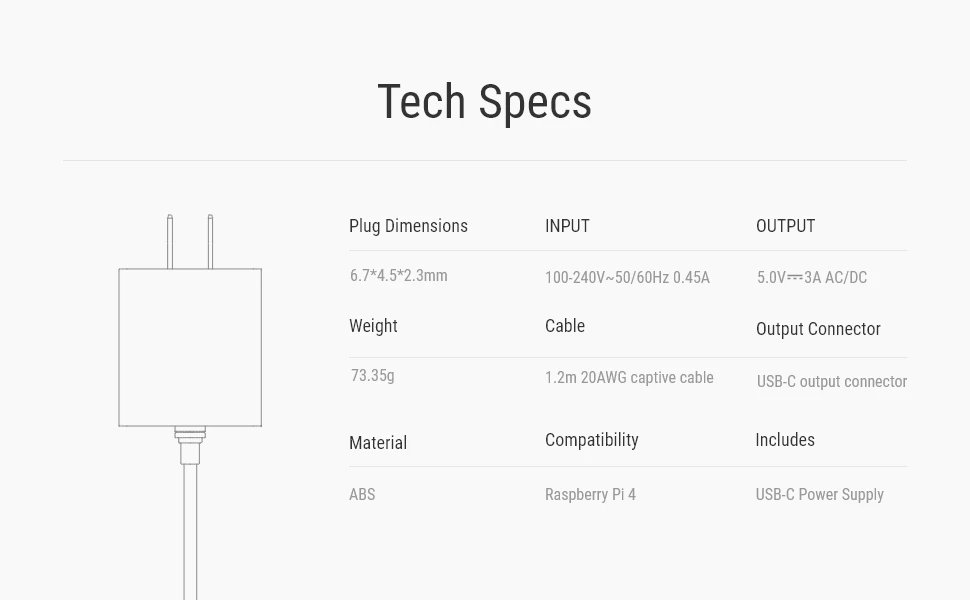 1. Совместим с Raspberry Pi 42.USB-C выходной разъем3. Вход: 100-240 В ~ 50/60 Гц 0.45A