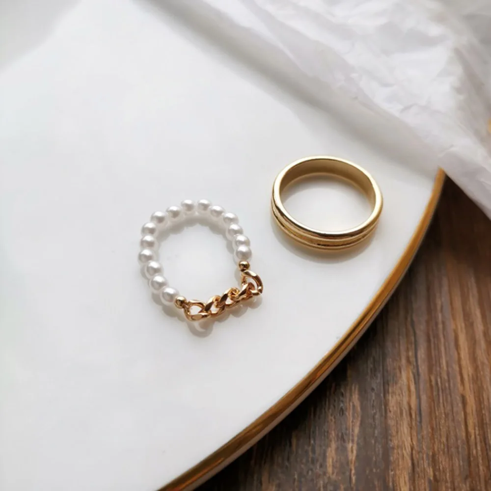 Простой золотистый кольцо на фаланг пальца Бусы из искусственного жемчуга кольца для женщин модные эластичные украшения Anillos