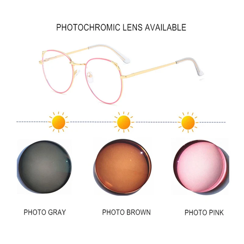 Это фотохромные очки по рецепту для близорукости, линзы будут прозрачными и бесцветными в помещении или в темных местах, но они изменят цвет на улице или на солнце, чтобы защитить ваши глаза от сильного светильник.