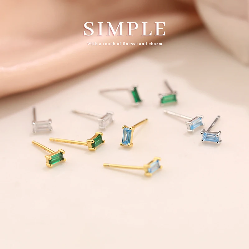 Натуральная 925 Стерлинговое Серебро геометрической формы циркон серьги-гвоздики покрытые для модных женщин; Ювелирные изделия из драгоценных камней в минималистском стиле аксессуары подарок