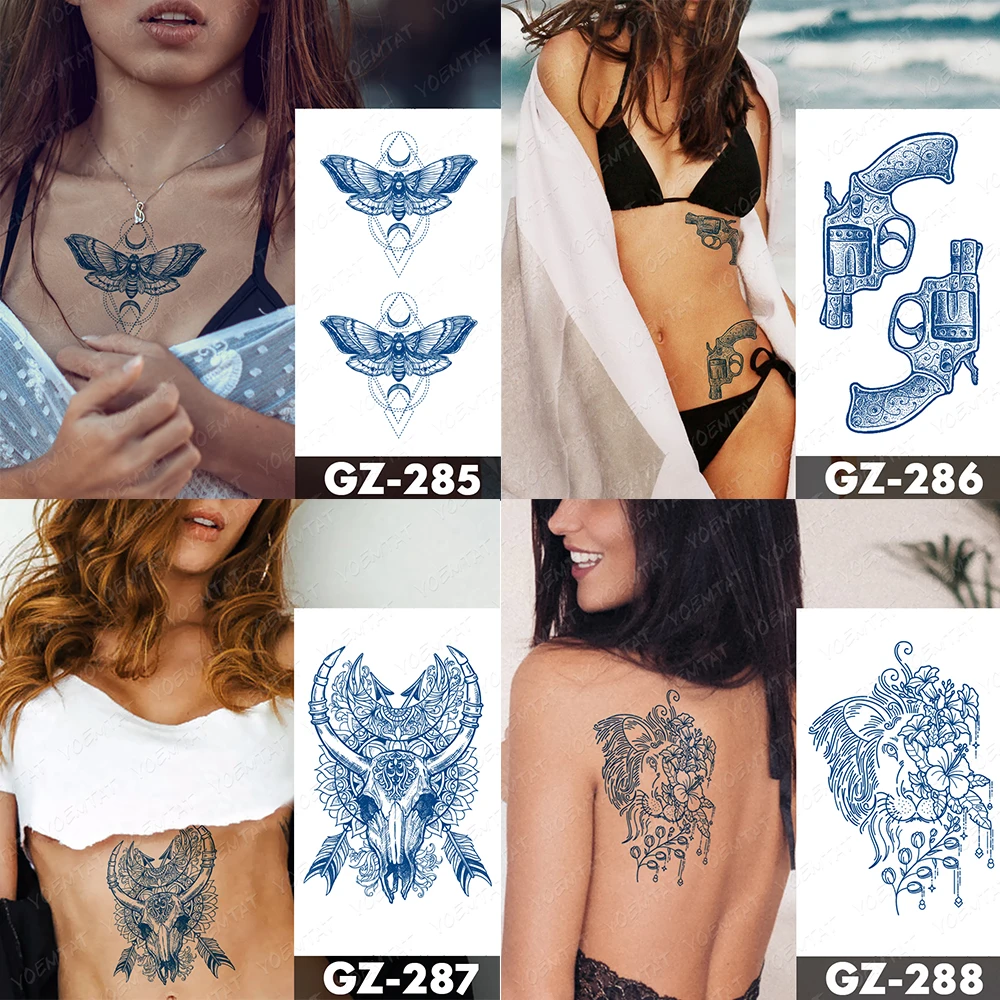Водостойкая Временная тату-наклейка Juice стойкая, лотос тотем, цветок, бабочка, Луна, флэш-тату, женские чернила, боди-арт, искусственная татуировка наклейки переводные тату татуировки временные стикеры мужские