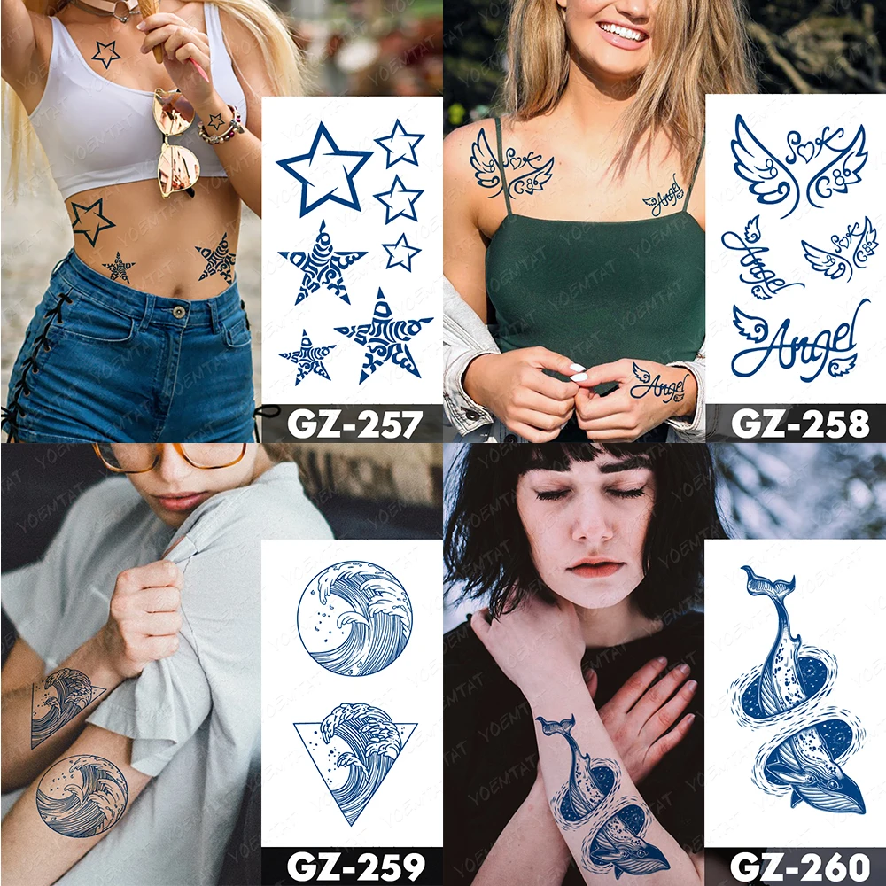 После контакта с кожей, окислительно активированный пигмент будет выглядеть синим и черным, что также является цветом настоящей татуировки. Не бойтесь потереть, это более Реалистичная татуировка на две недели Новые материалы, отличные цвета, более реальные