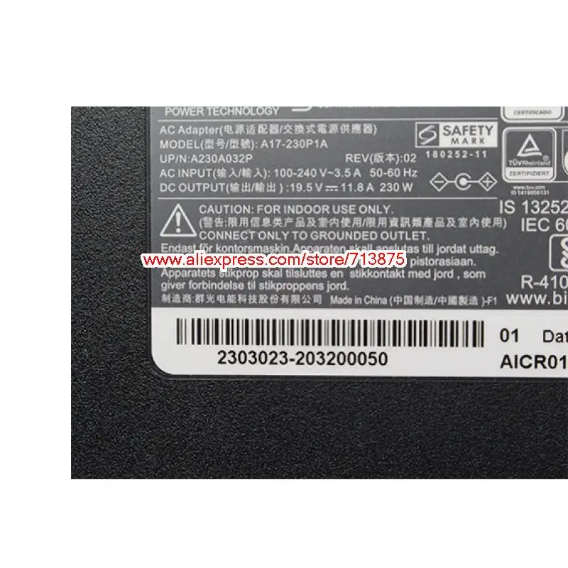 Подлинная A230A012L A17-230P1A 19,5 V 11.8A адаптер переменного тока A12-230P1A для ACER игровой ноутбук G9-793-75LA Clevo P15805 источник питания