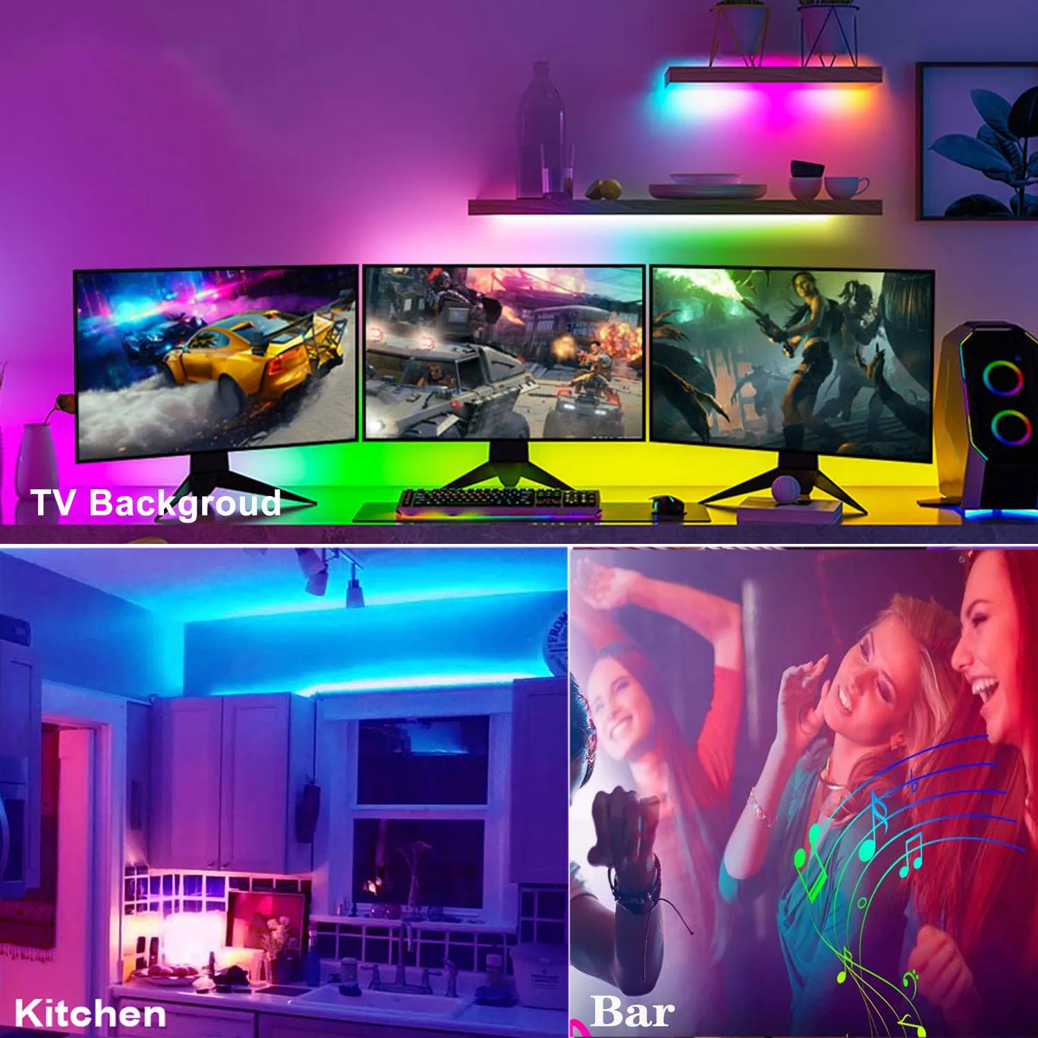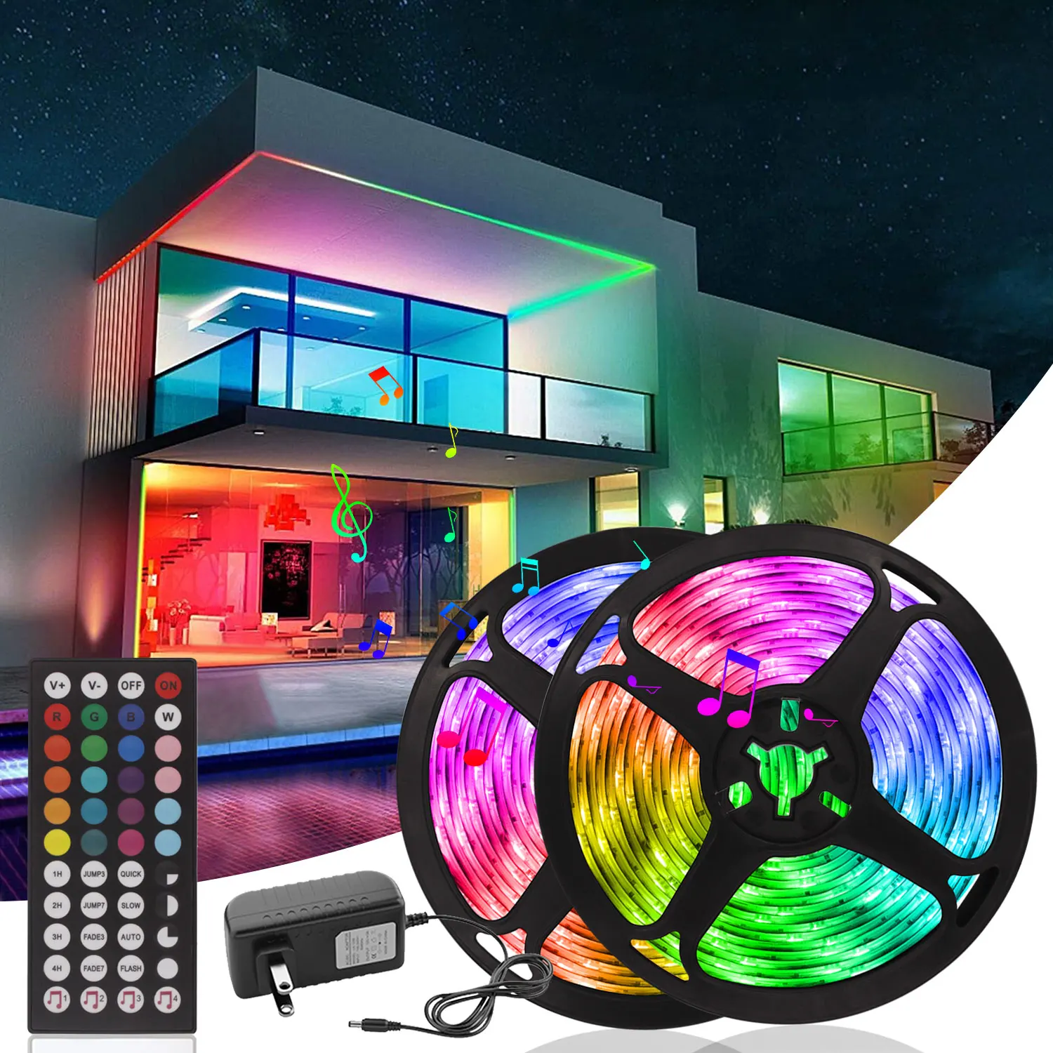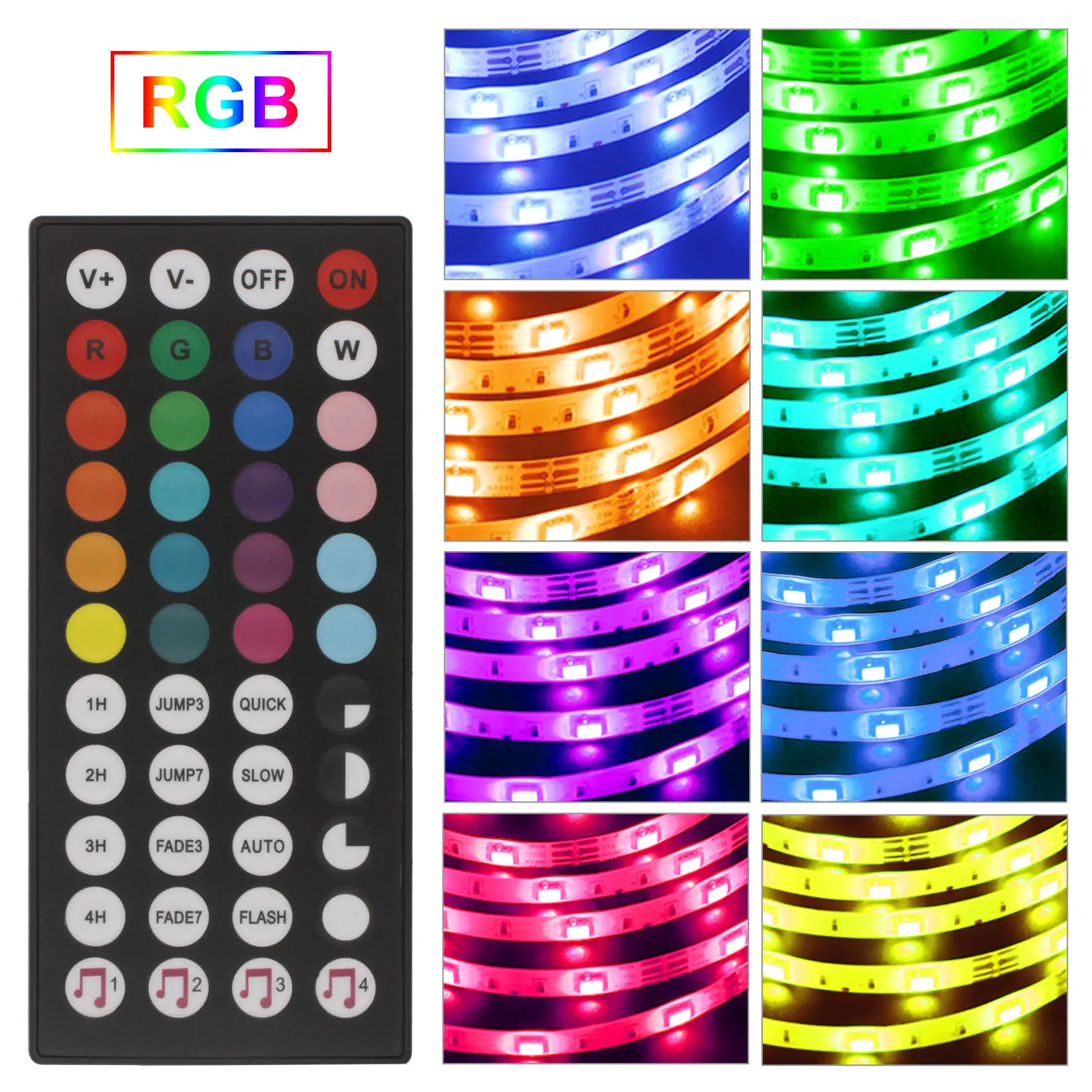 RGB 5050 Светодиодная ленсветильник с музыкальной синхронизацией и 44 клавишами, ИК-контроллер, гирлянда 5 м, 10 м, 15 м, 20 м, неоновая лента, 12 В постоянного тока, светильник щение для домашней комнаты