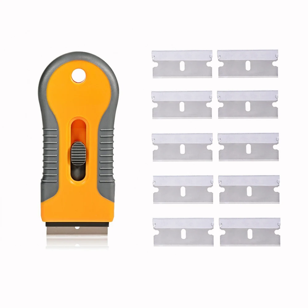 Инструмент для очистки от пыли FOSHIO, скребок для бритвы + 10 шт. лезвий для духовки, оконная тонировка, пленка для удаления автомобильных наклеек, виниловый скребок для обмотки стекол