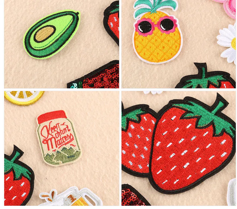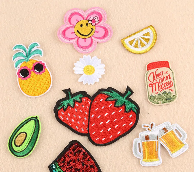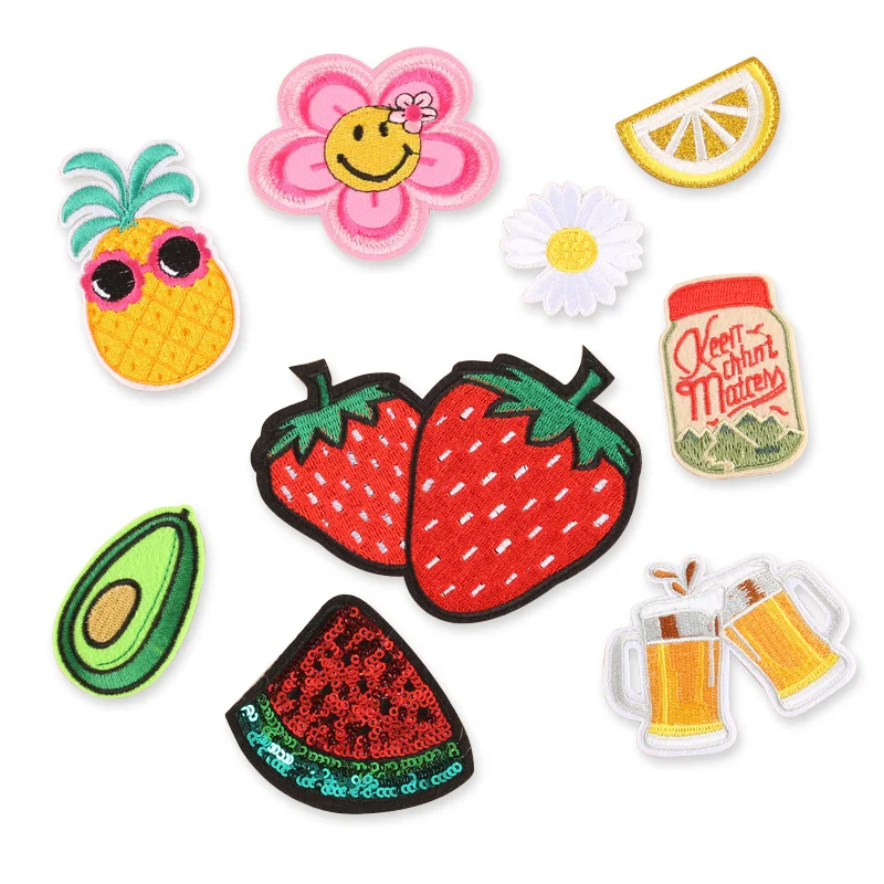 Наклейки с рисунком клубники, ананаса, арбуза, утюгом, Мультяшные тканевые нашивки, вышитые значки, абстрактные Детские нашивки для одежды, наклейки с пивом