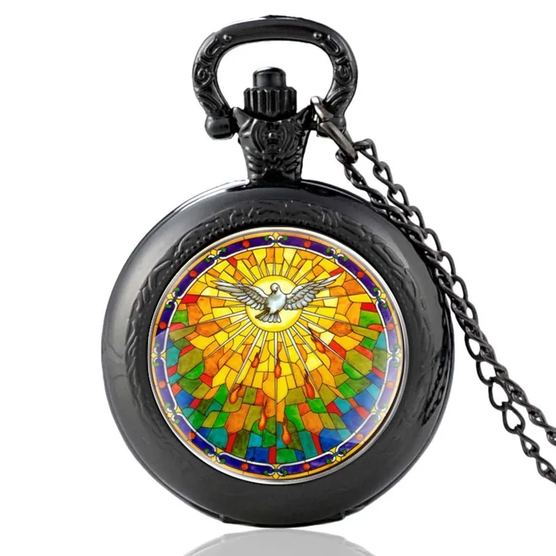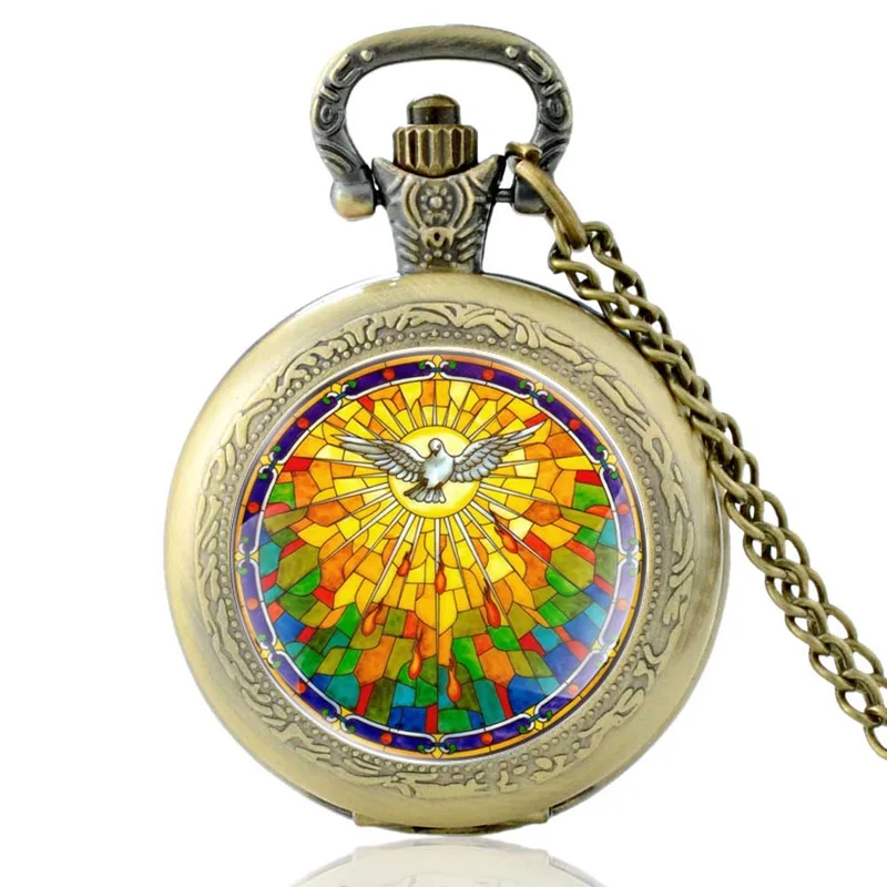 Часы наручные католические в стиле Святого Духа, дизайнерские Серебристые винтажные кварцевые карманные, с подвеской, для мужчин и женщин, Подарочные ожерелья