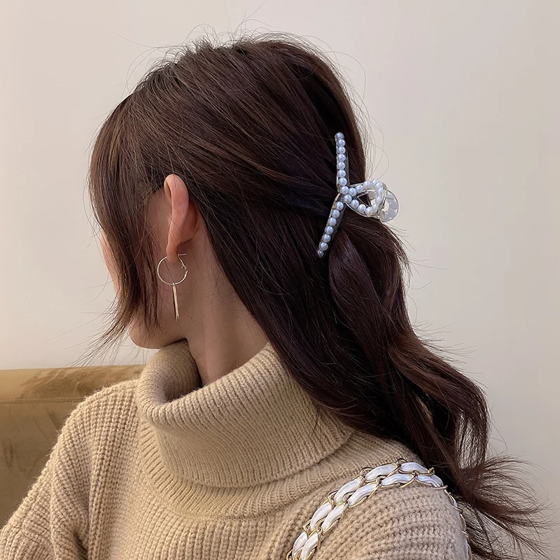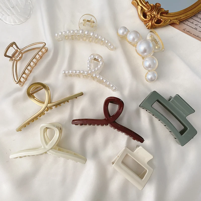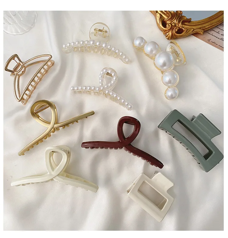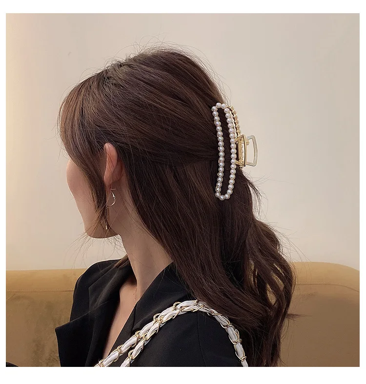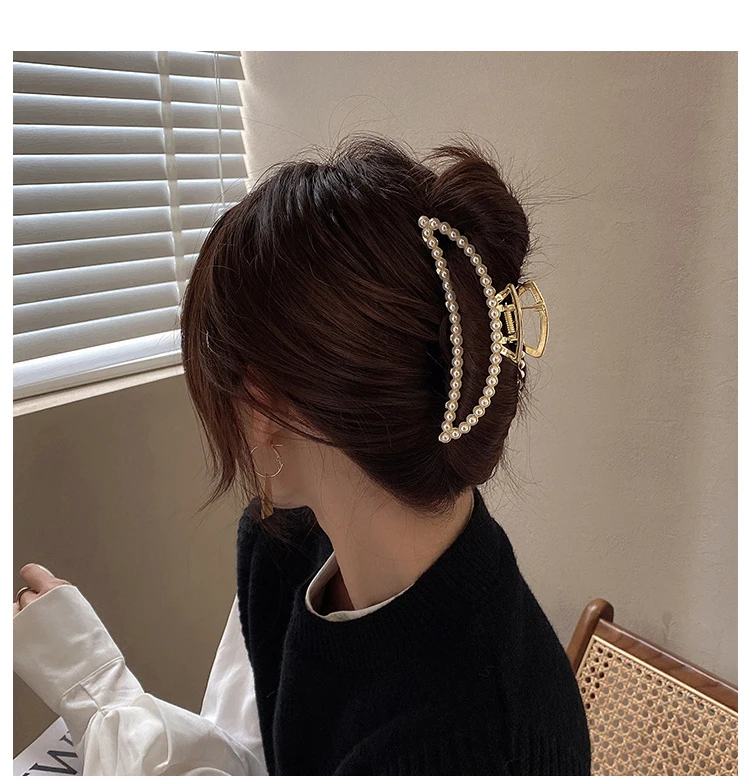 Женские крупные металлические заколки для волос Xwen, элегантные Геометрические заколки для волос с жемчугом, модные аксессуары для волос