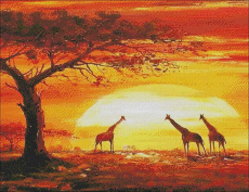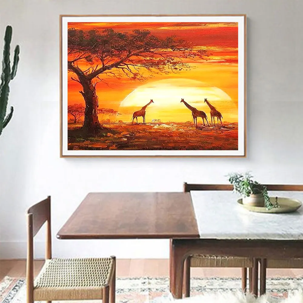 Закат луга Жираф Алмазная картина круглая полная дрель Сделай Сам мозаика вышивка 5D крестиком Африка живописный животный узор