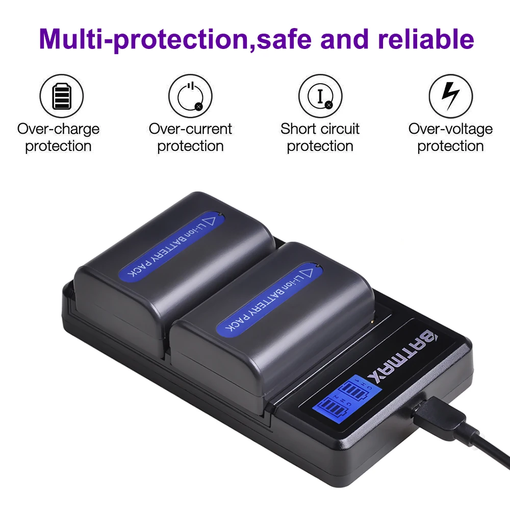 Аккумулятор NP-FM50 FM50 и зарядное устройство с двумя USB-портами, 2 шт., зарядное устройство с ЖК-дисплеем для Sony NP-FM51 NP-FM30 NP-FM55H серии A100 DCR-PC101 типа Sony