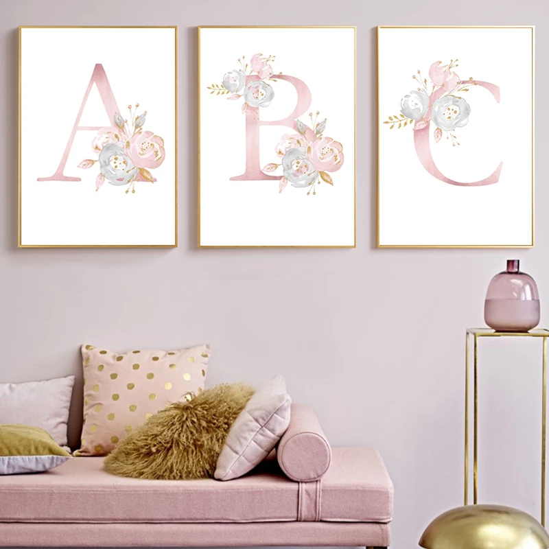 Акварельные розовые цветы, Детские холщовые плакаты, художественная картина для детской комнаты, настенные картины, картины на холсте, картины для декора комнаты для девочек