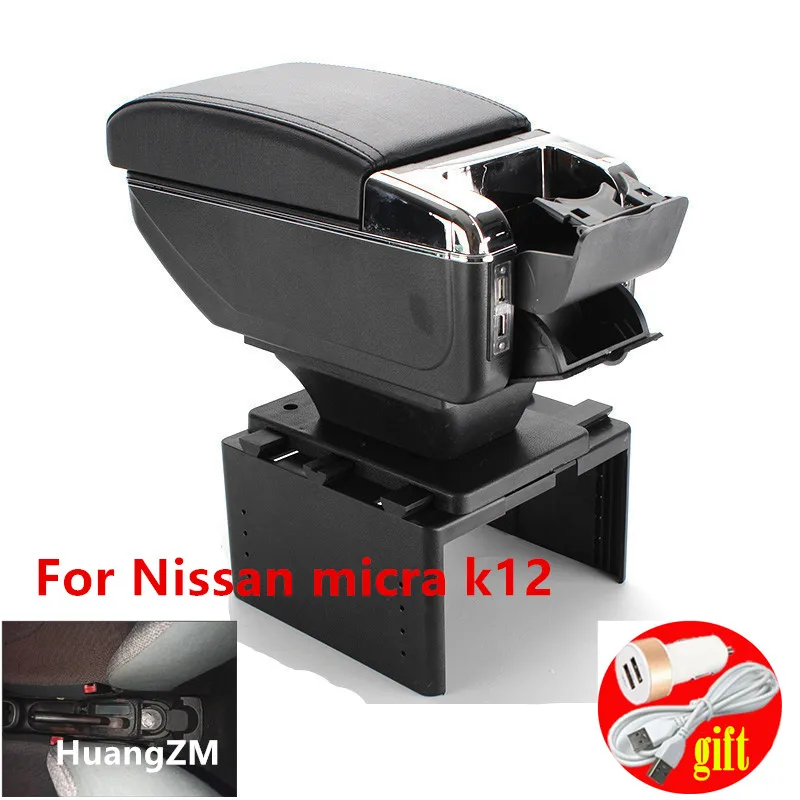 Подлокотник для Nissan micra k12, детали интерьера, специальные модифицированные детали, подлокотник, центральный контейнер со светодиодсветильник USB