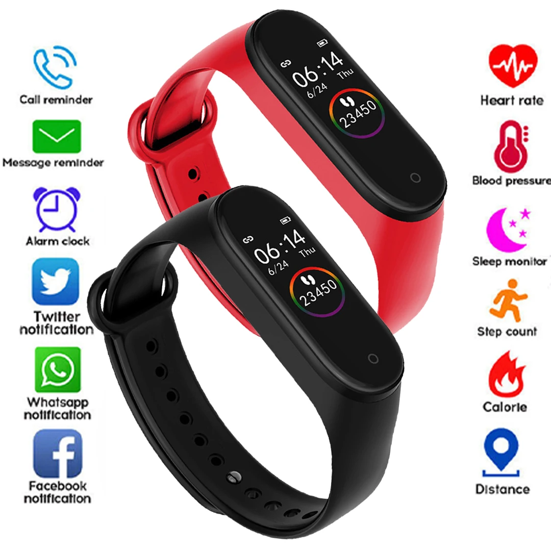M4 цветной экран Смарт-браслет монитор артериального давления пульса будильник для мужчин женщин детей спортивные Смарт-часы цифровые часы