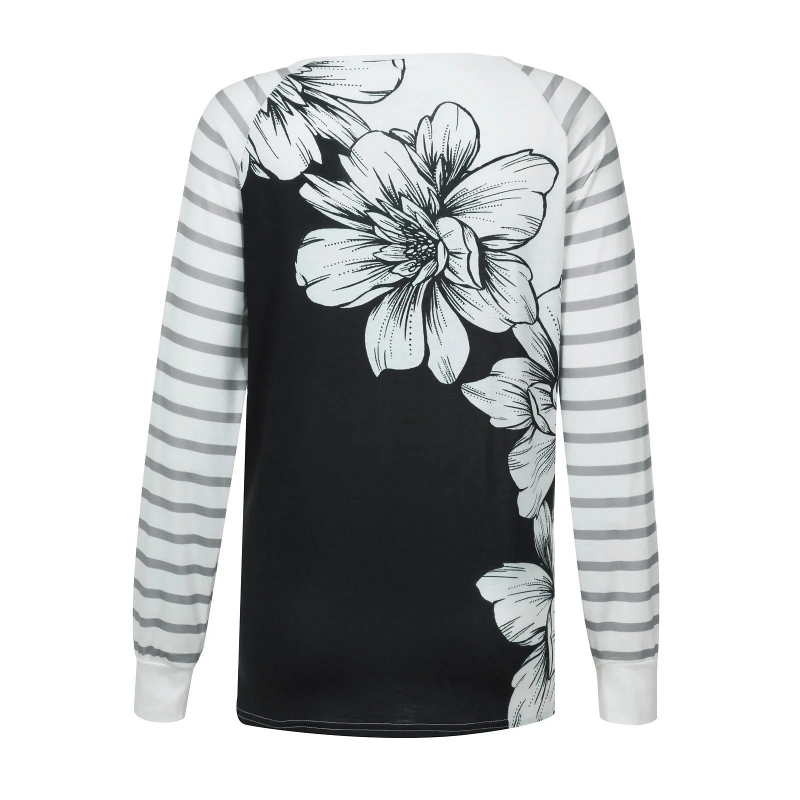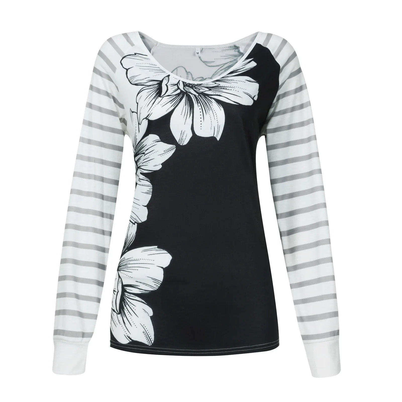 Женская Весенняя модная Лоскутная Блузка с V-образным вырезом и цветочным принтом, топы, пуловеры