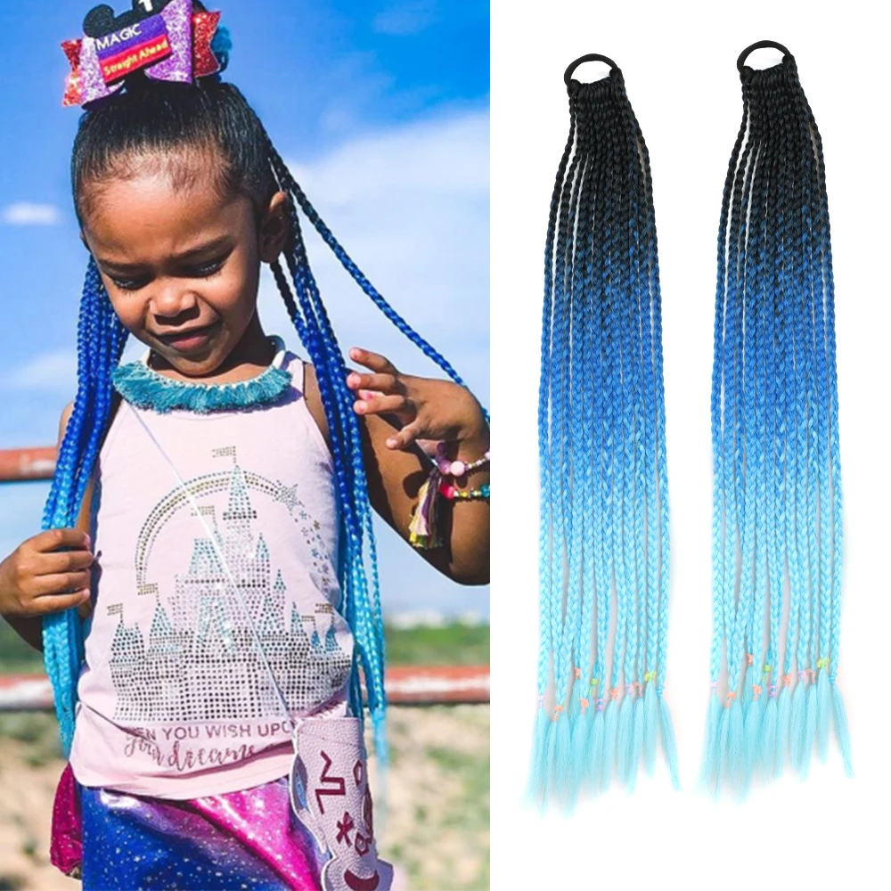 Синтетические волосы Омбре красные синие розовые радужные накладные хвосты красочные косы в коробке удлинители волос с резинкой накладной хвост