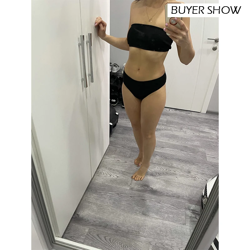 Женский купальник-бикини, с высокой талией, без бретелек, однотонны...