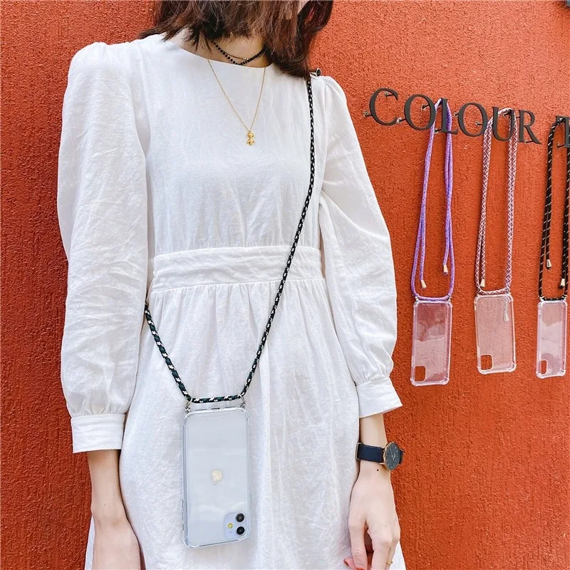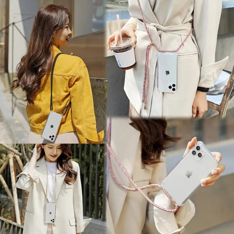 Прозрачный чехол с ремешком через плечо для iPhone 12, 11 Pro Max, XS, X, XR, 6, 6S, 7, 8 Plus, SE 2020, мягкие прозрачные чехлы с ремешком на шею