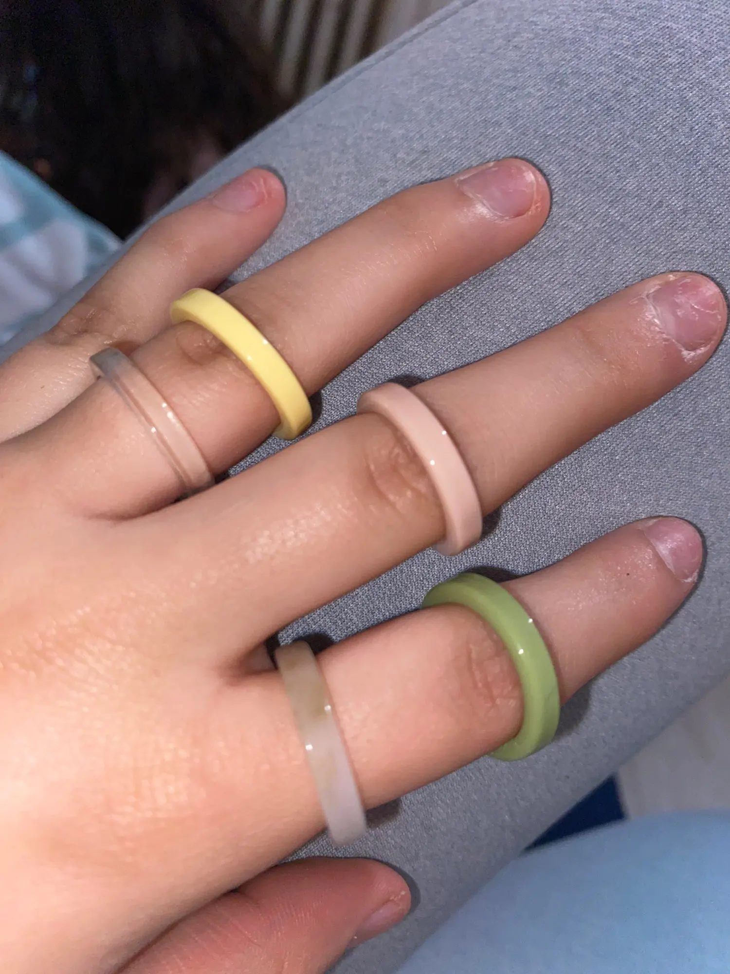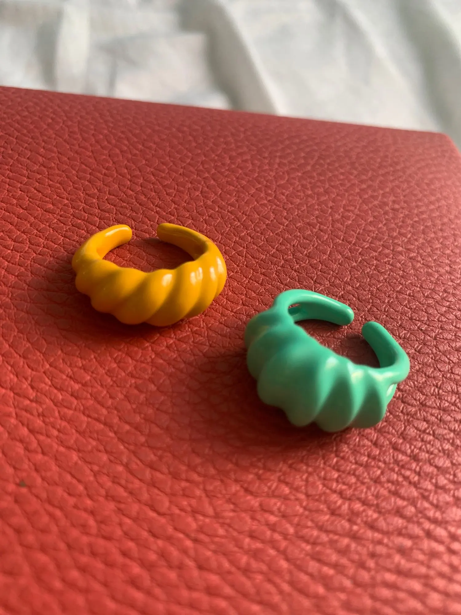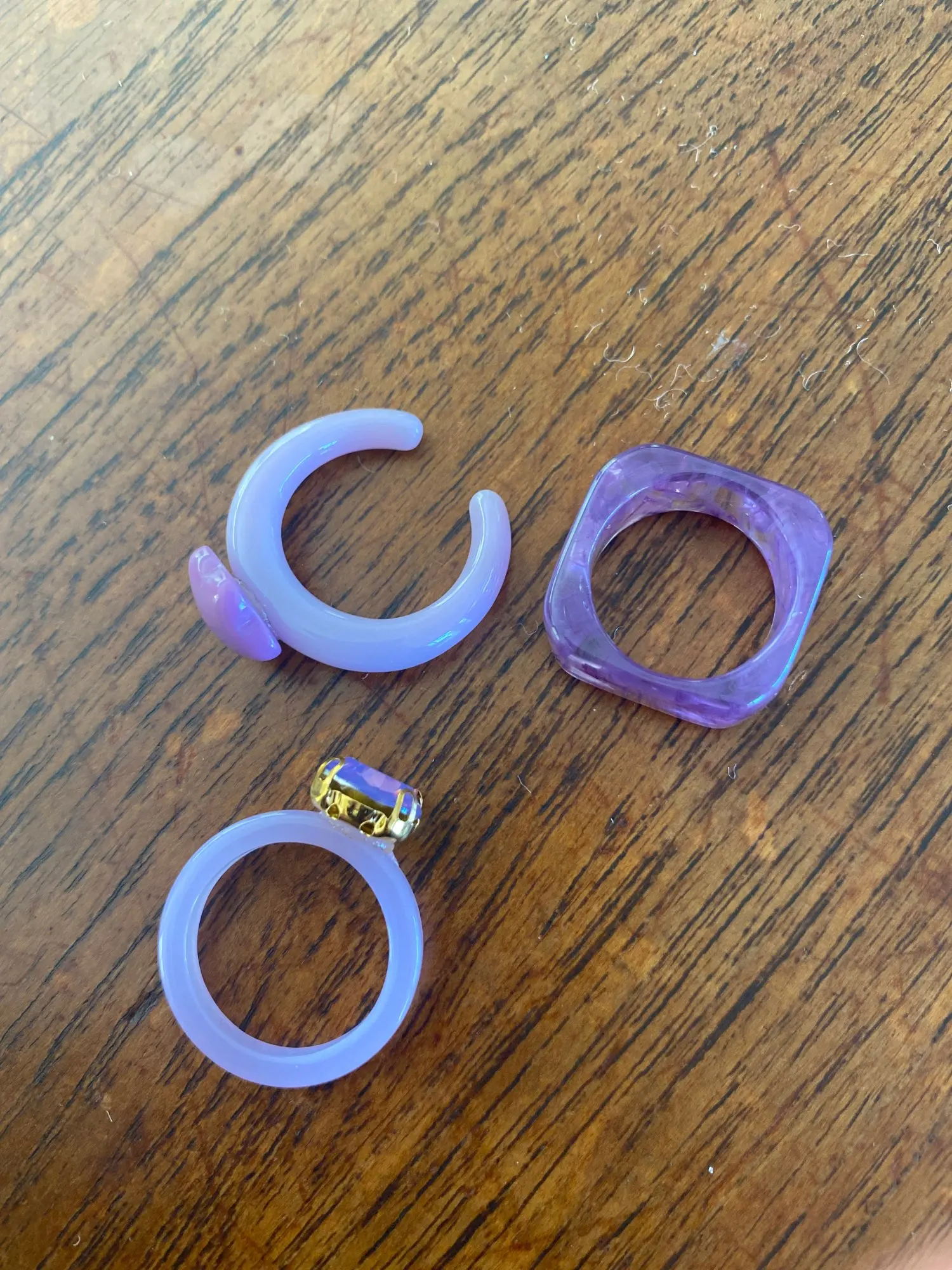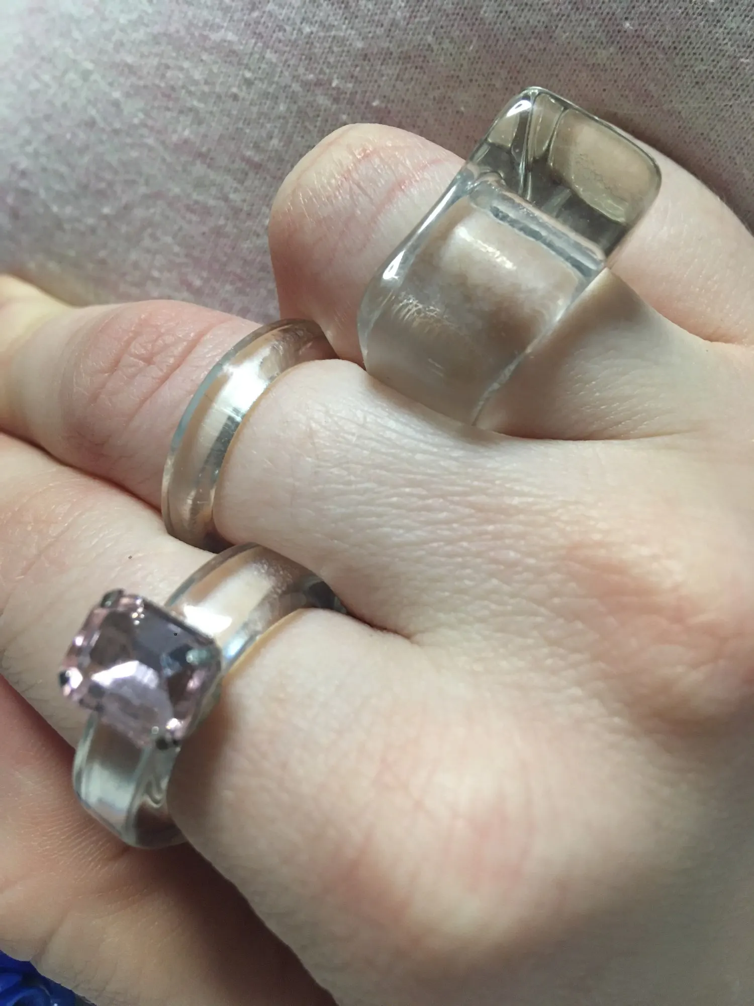 Кольца пришли большого размера, ни одно не подошло на палец. Сами по себе симпатичные, но нельзя указать нужный размер у продавца - это плохо