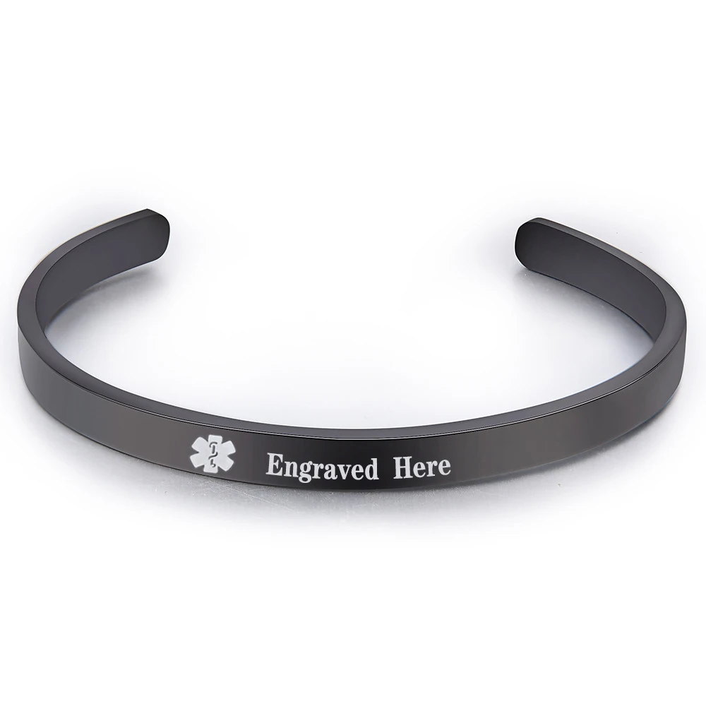 Модный Медицинский Браслет-манжета с оповещением, тонкий черный браслет из нержавеющей стали типа 1 с диабетом и заболеваниями, ювелирные изделия в стиле хип-хоп